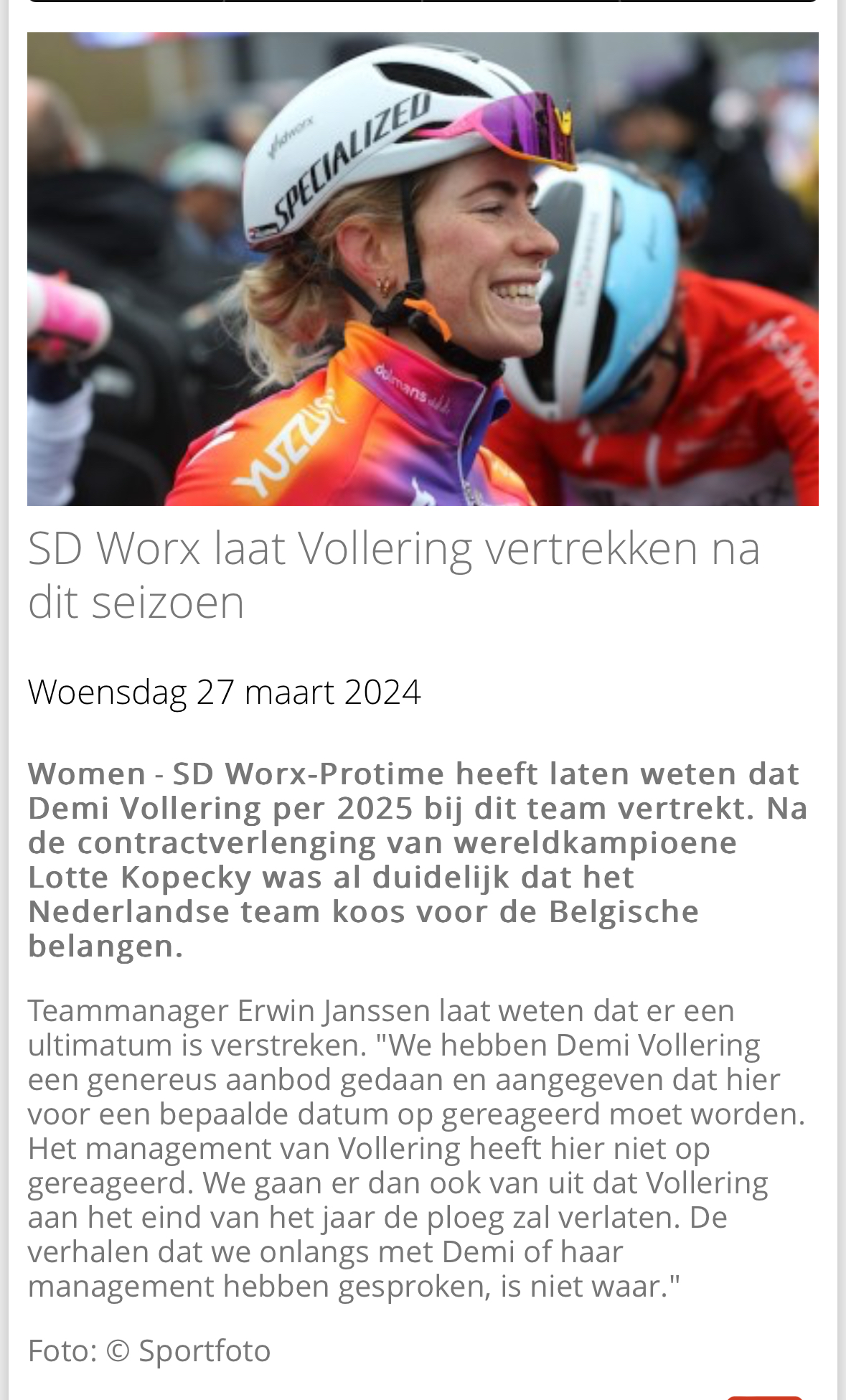 Ik meen dat de geruchten over UAE en Vollering ruim voor de contact verlenging van Kopecky rondgingen.