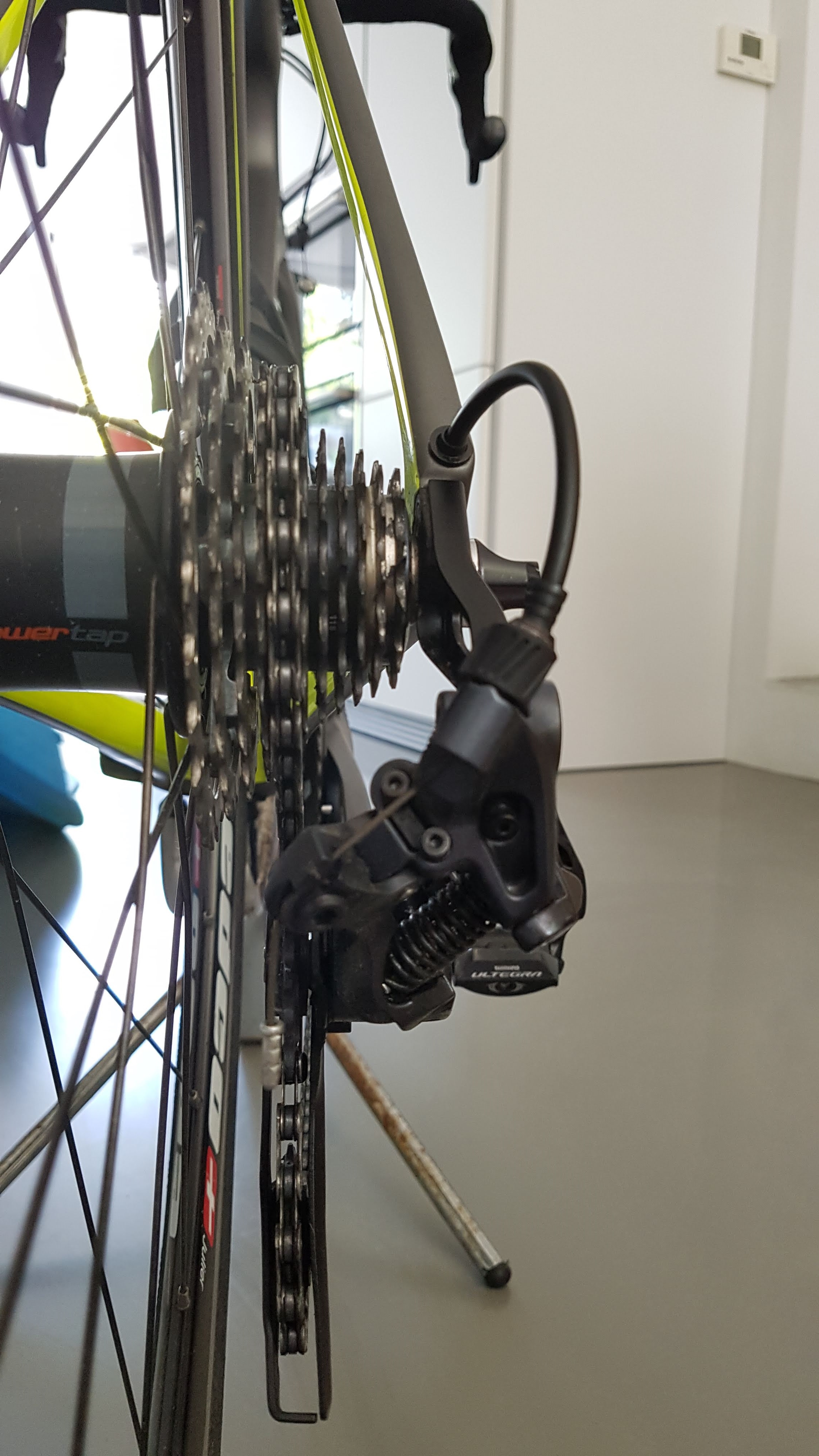Nu heb ik drie ritten gereden inmiddels met de nieuwe ketting en met de nieuwe cassette maar ik ben niet echt blij. Hij schakelt verder prima dus aan de kabelspanning kan het niet aan liggen maar ik word niet blij van een licht hoorbare rammelende ketting, voornamelijk wanneer ik op het grote blad (50) rij van mijn compact.