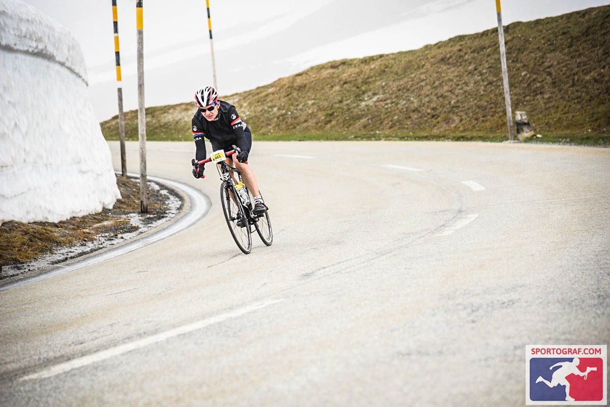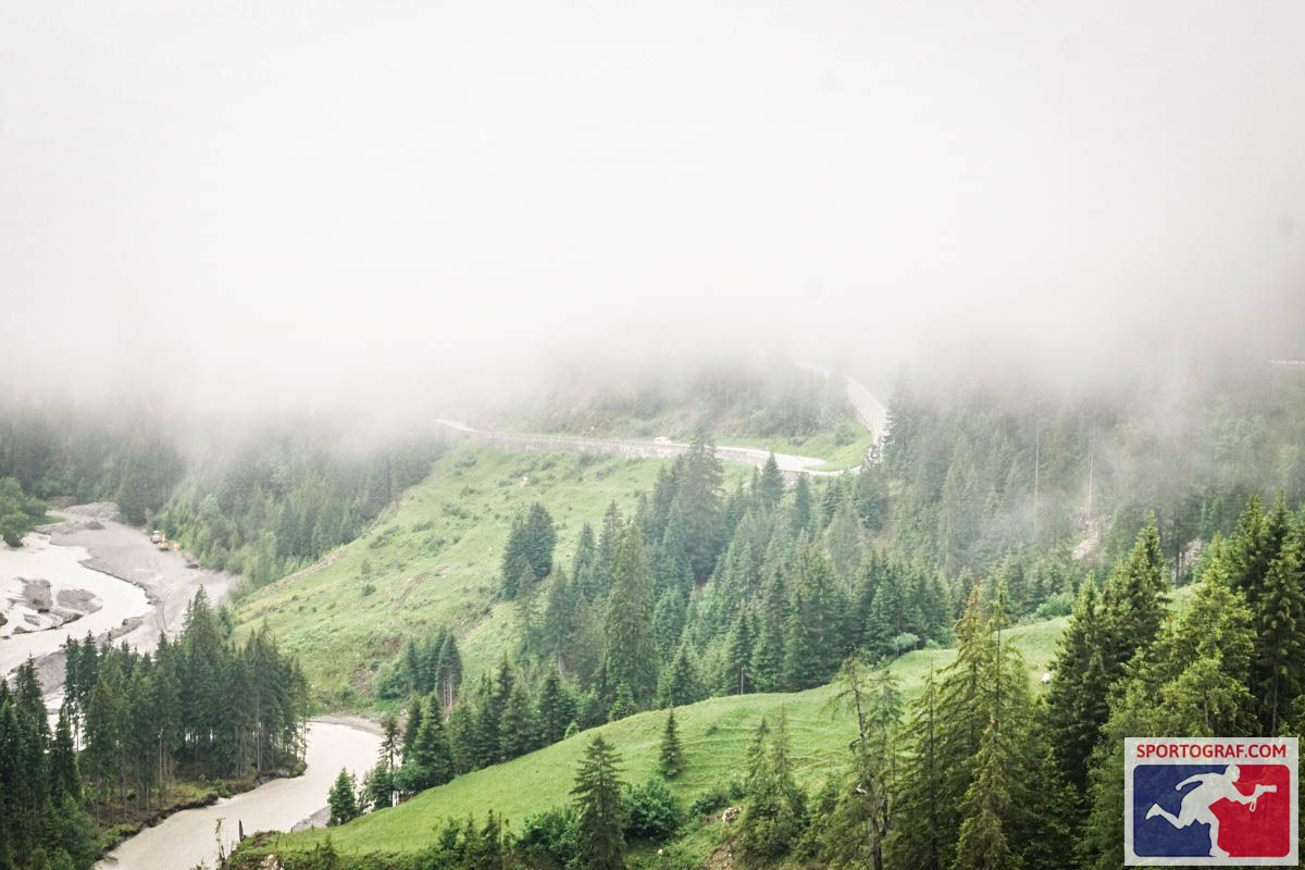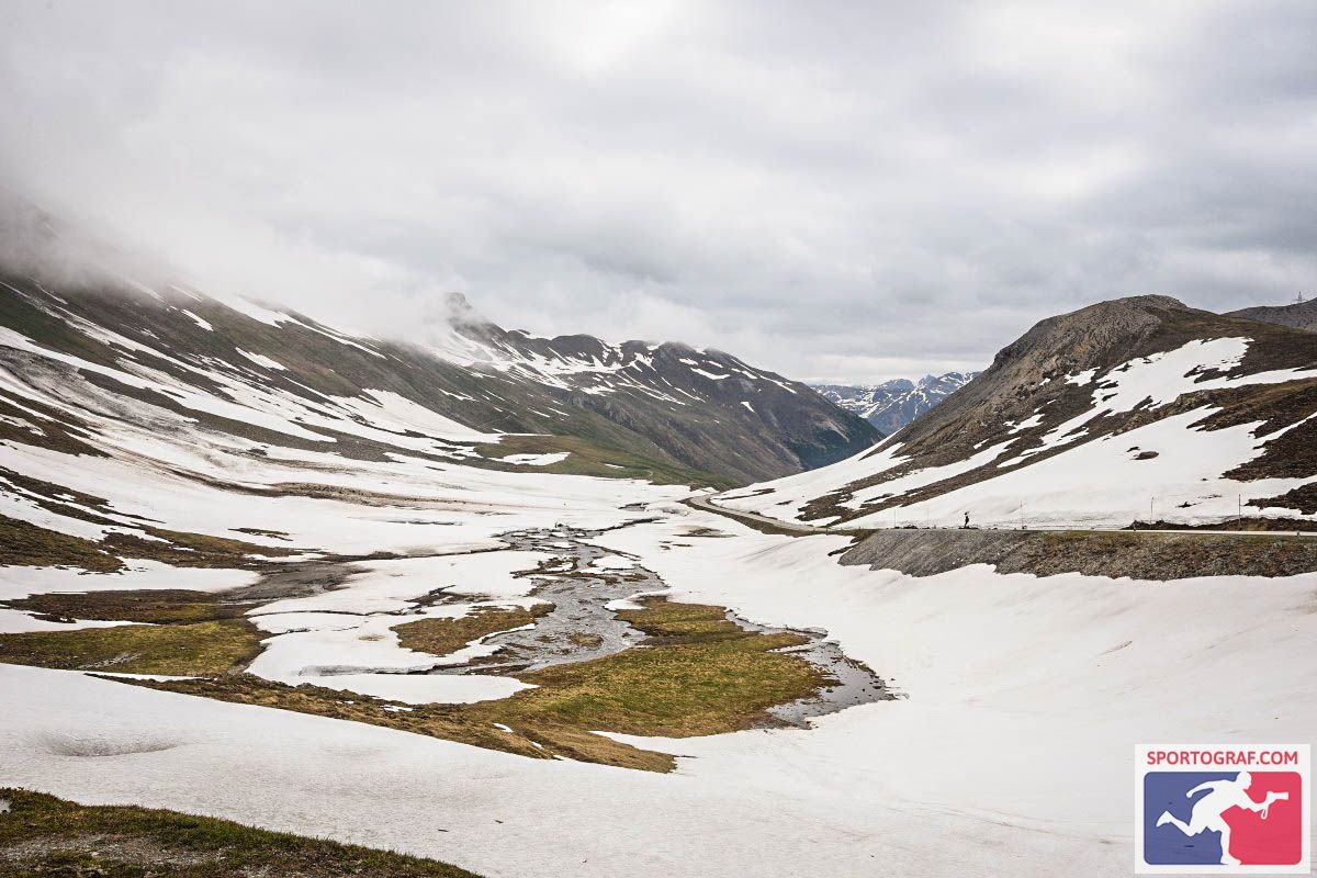 Dan gaat het via Sankt Moritz met zijn hoog gehalte Ferrari’s en Porches per inwoner naar Silvaplana. Voor de lange route had hier een limiet van 11:00 uur gestaan. Daar zou ik nog een 40 minuten speling op hebben gehad. De aankomst limiet voor de lange route stond voor mij toch wel erg scherp. De finish voor de lange route zou om 17:30 uur al dicht gaan. Als je dan ook nog af en toe moet stoppen, jasje aan, jasje uit, bidon vullen, worstelen met het openmaken van verpakkingen van gelletjes en reepjes etc., is dat voor mij toch wel een iets om goed rekening mee te houden.