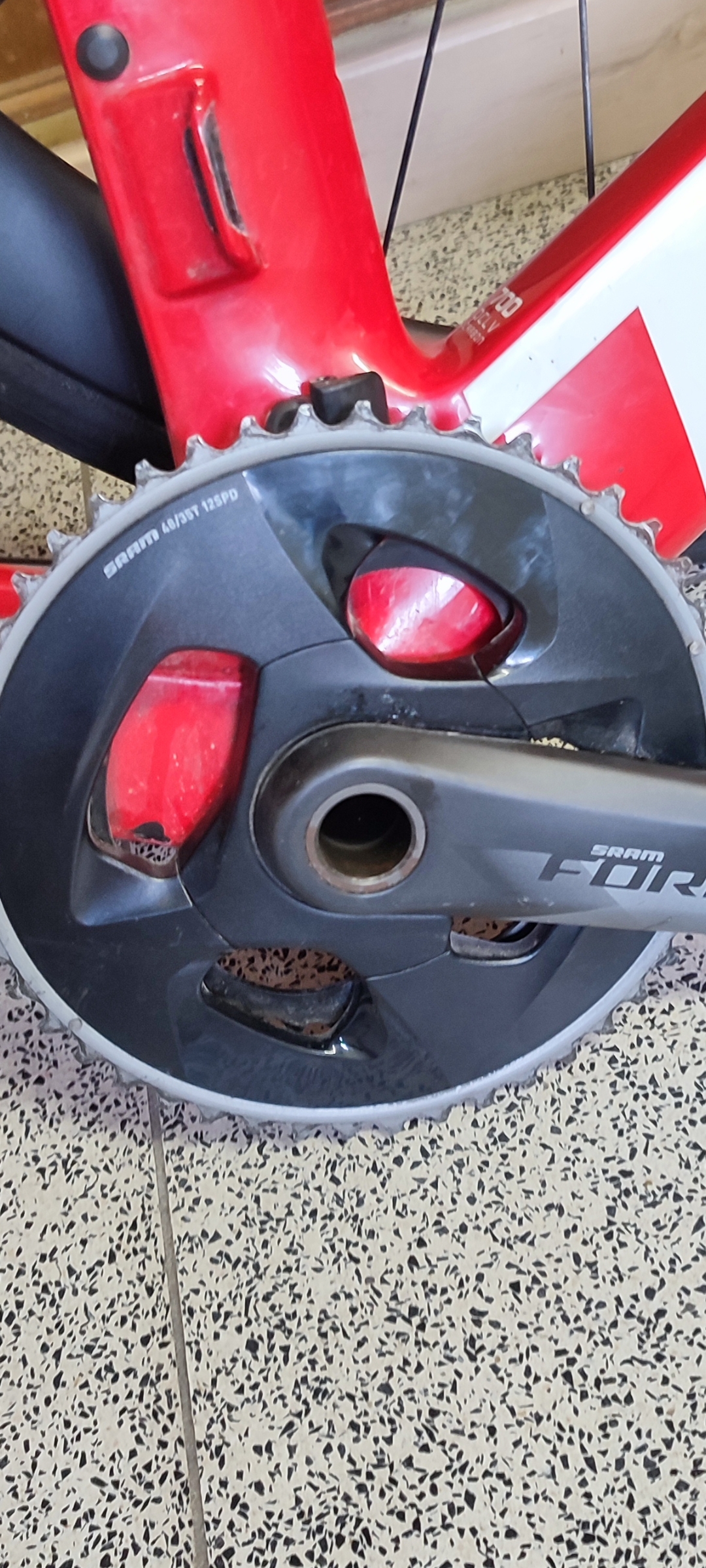 Deze is afgemonteerd met een Sram Force AXS Groepsets.