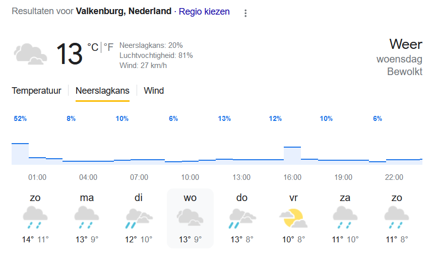 Volgende week woensdag en vrijdag worden, volgens de verwachting, droge dagen in Valkenburg.