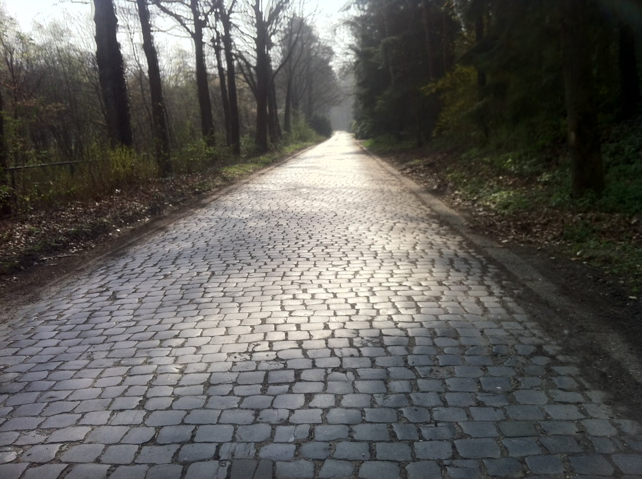 Frustratie was het woord dat ik woensdag gebruikte. Waarom lukt het niet? Ik heb twee pogingen gedaan om de intervaltraining uit te voeren zoals gepland. Het hoofd zoekt naar excuses. Maar als het echt niet lukt, dan moet je stoppen. Fietsen is een hobby en geen werk. Dan maar een rondje fietsen omdat het leuk is. Een stukje over kasseien rijden bijvoorbeeld. Vlak bij Soest ligt het Heezerspoor. De kasseistrook is de eerste 200 meter openbaar toegankelijk. Linksaf rij je een fietspad op, rechtdoor lopen de kasseien door. Helaas staat er een hek dat de toegang tot het militaire oefenterrein de Vlasakkers afsluit. Zou het niet mooi zijn als dat hek af en toe eens open staat?