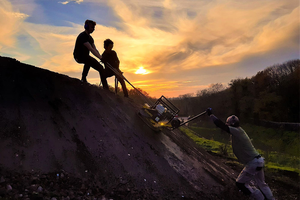 nieuwe mountainbikeroute rondom Mook dan kom je vanzelf langs het park. Gesitueerd op een oude vuilstortplaats zijn drie lijnen uitgezet. De blauwe en meest eenvoudige lijn zit in de vaste route en kom je daardoor vanzelf tegen. Deze lijn bevat rollers, een soort pumptrack en kleine tafelsprongen die voor iedereen haalbaar of rolbaar zijn.