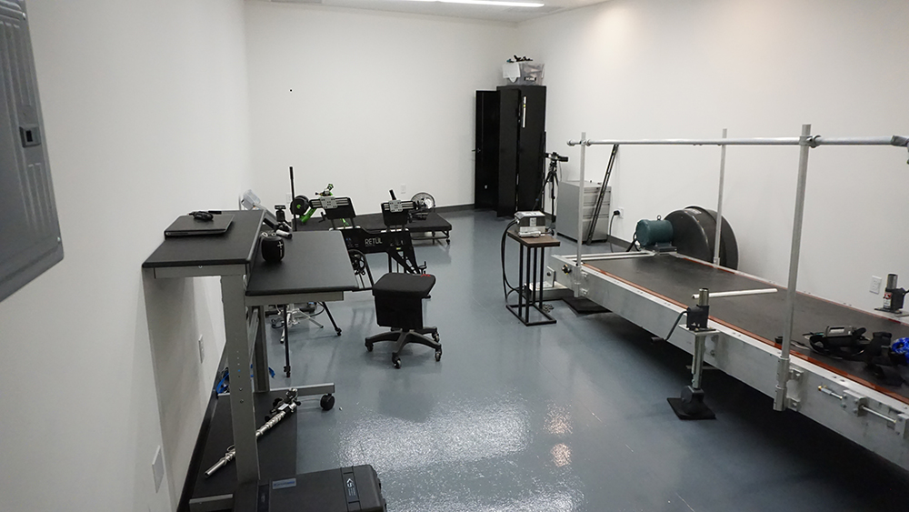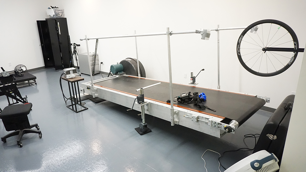 Bijzonder is de (klimaat)kamer aangrenzend aan de windtunnel. Een enorme lopende band, in huis ontworpen om diverse windtunnel tests in praktijk na te lopen. Renners rijden ‘los’ op hun eigen fiets op de lopende band terwijl allerlei medische zaken gemeten kunnen worden. Door middel van een zuurstofmasker is hoogte te simuleren. De verwarming gaat aan wanneer de zomer moet worden nagebootst.