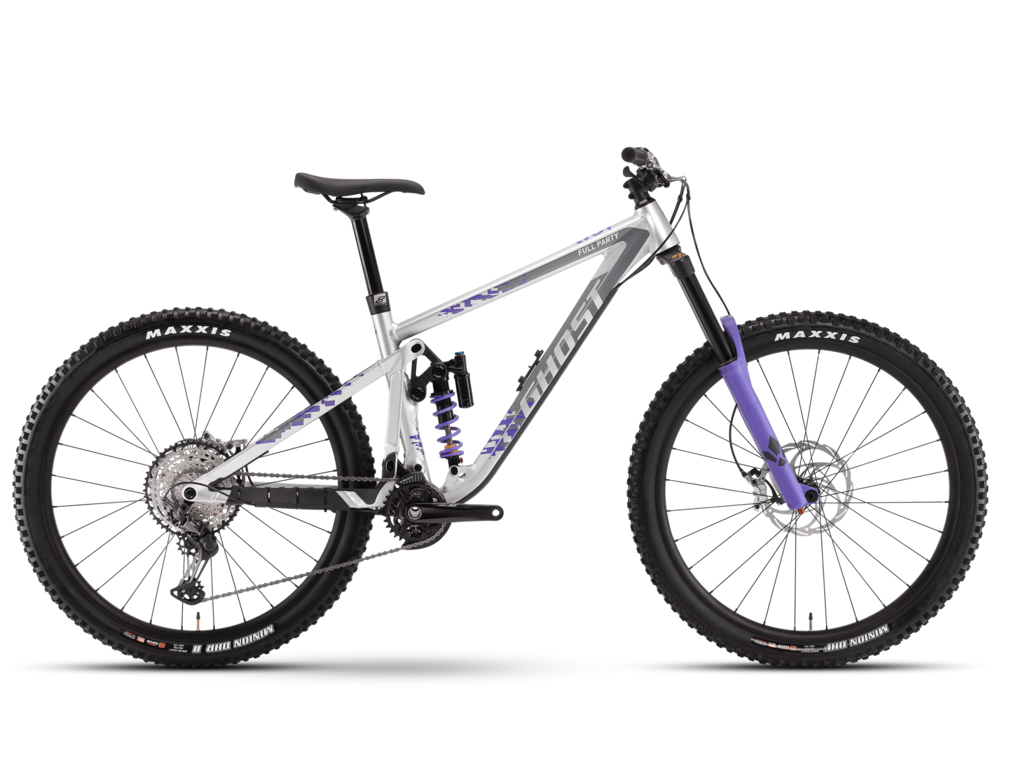 Zo is er de Riot. Een rammer van een endurofiets die ook beschikbaar is in wat meer bescheiden trailversie. Zo’n Riot, gewoon met aluminium frame heeft 170 millimeter veerweg. De trailversie krijgt 140 millimeter veerweg mee. Als basis voor deze fiets is het ‘Traction link’ veersysteem gebruikt in samenwerking met Ghost’s nieuwe ‘SuperFit’ maatvoering. Traction link bestaat uit een achtervork bestaande uit één deel. Een dubbele link stuurt de demper aan. De Riot fietsen worden grotendeels geleverd met coil demper. Dik!