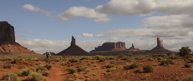 Het blijft maar waaien. Stormen zelfs. Dat de camper dan heen en weer schut, is geen probleem meer. Het wiegt ons lekker in slaap. Van koude nachten hebben we geen last meer onder de super slaapzaak die als deken dienst doet. In de ochtend blijkt het slechte weer overgewaaid. De lucht vol stapelwolken is een plaatje. Ik besluit de Wildcat Trail te rijden. Ja, het is maar een kilometer of acht, maar wat voor kilometers. Het is een epic ride zoals de Amerikanen zo’n droom trail met een gevoel voor understatement noemen. Het hoort zeker bij de mooiste stukken die ik van mijn leven heb gefietst. En ik durf te beweren dat dat wel wat wil zeggen. Het decor lijkt een computer animatie uit de beste film van Steven Spielberg die hij nog moet maken. Het pad is verlaten en slingert heen en weer. Bochtjes, steentjes, af en toe stukken los zand, maar op de laatste zandduin na, allemaal te fietsen. Mijn fotocamera kan ik eigenlijk overal neerzetten. De mooiste plek bestaat niet tussen de mooiste plekken. Een euforisch gevoel dat tot in de toppen van mijn tenen, tot de haren op mijn hoofd zou gaan, als ik daar haar zou hebben.