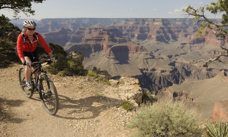 Naarmate we verder naar het eind komen, wordt het pad leger en leger. Hikers zijn er geen meer. Tijd om burgerlijk ongehoorzaam te zijn en de smalle onverharde trail te volgen die rakelings langs de diepte suist. Met de snelheid van een bike is een stuurfout niet aan de orde. Tenminste niet als je ooit nog eens in Zuid Limburg wilt gaan fietsen. Een kick geeft het wel. Korte bochtjes draaien langs dit oogverblindende panorama. Na op een haar na 20 km eindigt de trail bij Hermit rest. Daar rusten we even, genieten wat na en biken terug. De trails zijn leeg. De wandelaars zijn al naar huis. Als wij bij ons rijdend huisje aankomen zijn we tevreden met deze dag. Hoe kan het ook anders. Hike in de Grand Canyon south rim Arizona