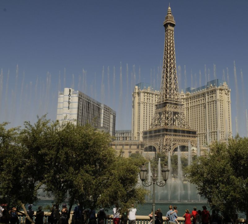 Luxor hotel Het Luxor hotel is een bezienswaardigheid op zich. Het is gebouwd in de vorm van een grote glazen piramide. En als ik zeg groot, dan bedoel ik ook groot. Er zit een hotel in met 22 etages. Het is een duidelijk bewijs van een vorm van grootsheidswaanzin, gigantomanie dus. Dat zie je ook terug bij de andere belangrijke hotel/casino’s. Zo is een deel van het Comomeer nagebouwd en om het uur voeren enorme fonteinen daar een watershow op. Vreemd genoeg met op de achtergrond de Eifeltoren. Het is nep, heel nep zelfs. Maar dan wel een vorm van nep waarvan je moet oppassen dat het niet mooier is uitgevoerd dan het origineel. Veel Amerikanen hebben het idee dat ze niet meer naar Europa hoeven als ze in Las Vegas zijn geweest. Da’s dan weer een beetje simpel.