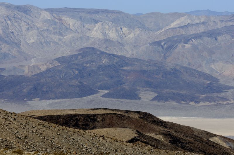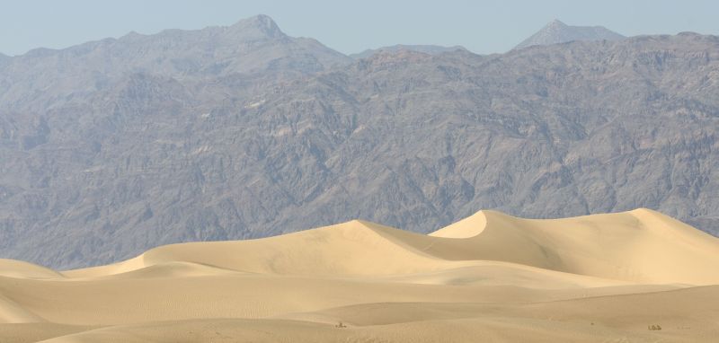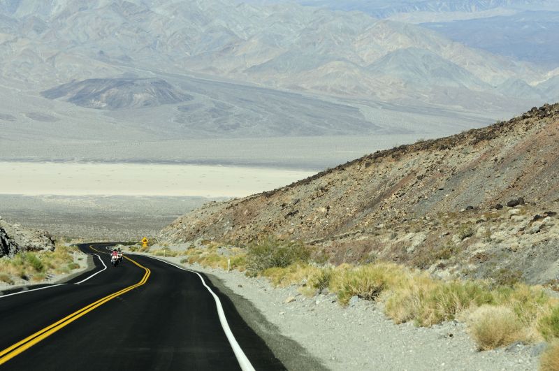 De verkoeling die een plons water brengt is meer dan weldadig en welkom. En het is best kicken zo midden in Death Valley met vanuit de camper zicht op de beroemde zandduinen van het park. Gelukkig koelt het vanavond flink af, ruim 17 graden. Is het vannacht tenminste ‘maar’ 23 graden. Death Valley – Big Bear Lake (San Bernardio National Forest) Van grote diepte naar hoge hoogte Toch weer speciaal om wakker te worden onder zeeniveau, midden in Death Valley. Onze airco heeft een flink deel van de nacht staan snorren. We zijn al vroeg wakker en knarren de trog uit die Death Valley heet. De weg lijkt vals plat omhoog te gaan, maar dat is schijn. Het gaat pittig omhoog. De hoogteaanduidingen naast de weg laten daar geen misverstand over bestaan. Het advies op de borden naast de weg is om de airco van de auto uit te zetten om oververhitting te voorkomen. Ze staan er echt niet voor niets. In een mum van tijd kijken we terug en ligt de bodem van Death Valley meer dan 1000 meter onder ons. In de ochtendzon nemen de rotsen in de woestijn de meest bizarre kleuren aan. Vooral de verschillen zijn groot. Bruine, beige, grijze en soms ronduit gele tinten overheersen in het pallet. Het pikzwarte nieuwe asfalt met een opvallend gele middenstreep voegt daar nog een surrealistisch sausje aan toe. Bijzondere foto’s zijn het bewijs.