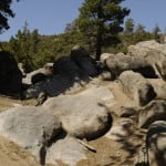 Big Bear ‘Bike’ Lake De nacht kent een temperatuur onder het vriespunt. Geen probleem met de verwarming zacht snorrend aan. Wij beginnen het te leren, het camperleven. Na samen familieberaad te hebben gehouden verlaten we de camping om naar het informatiecentrum van de rangers te rijden. Daar geeft een vrijwilligster goede informatie. Zij adviseert ons om op een onverharde weg een plekje te zoeken en daar te kamperen. Omdat wij een jaarkaart voor de natuurparken hebben kost dat niets. Even later kreunt onze Ford het onverharde stoffige weggetje op van de Holcomb Valley. Op een plek met een uitzicht uit duizenden gaat hij op de handrem. Ik ga een rondje fietsen en Ingrid maakt een wandeling van twee uurtjes. The Gold Fever Trail De fietsroute van 40 km is zeker de moeite waard. Het is een voormalige (1860) route die gebruikt werd ten tijde van de goudkoorts. De maalstenen zijn nog te bezichtigen en er zijn brokstukken van een voormalige saloon. Voor een deel volg ik de routekaart en een ander deel rij ik meer op goed geluk en met een gecalculeerd risico. Het is zeker een mooi gebied om te fietsen. Het uitzicht op het meer Big Bear is prachtig en onderweg schieten er allerlei dieren voor de wielen door. Hagedissen en een soort eekhoorn zijn in de meerderheid. Het is weekend en in dit gebied is het deels toegestaan om met terreinvoertuigen te rijden.