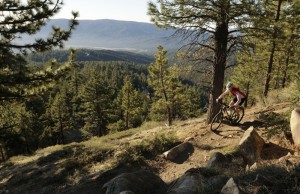 Tijd voor actieFiets van de drager en op naar de Mountain Loop, die was geadviseerd door de boys in Bear Lake. Op internet lijkt de route wat ingewikkeld, maar in de praktijk is het eigenlijk gewoon steeds de smalle singletrail volgen. Het is nog mogelijk om eerst naar de top van de berg te rijden, maar die trail is niet spannend genoeg. De zwaartekracht het werk laten doen dan maar. Op een paar plaatsen is technisch kunnen van boven gemiddeld niveau nodig. Het overgrote deel is niet al te moeilijk. Alleen overmoedigheid kan voor ellende zorgen. De trails lopen nu eenmaal langs afgronden waar je liever niet in valt. En als het geen dieptes zijn, dan staan er wel bosjes met doornen die niet alleen met plezier een mountainbikeband doorboren, ze krassen met nog veel meer lol je vel open op tenminste honderd plaatsen. En zo alleen in het donkere sprookjesbos wil ik liever niet op mijn plaat gaan. Het is per slot van rekening nog geen half acht ‘s ochtends en dat is voor de meeste van het handjevol bikers dat vandaag hier de afdaling zal maken, nog wat vroeg. Bovendien lijkt het mij geen lolletje om hier een paar uur op hulp te liggen wachten om daarna met een gebroken ledemaat nog heel veel hoogtemeters vervoerd te moeten worden. De gedachte alleen al maant om voorzichtigheid en een snelheid royaal binnen de veiligheidsmarge. En trouwens, ik wil helemaal niet dat de trail te snel op is. Genieten is het devies. Dat doe ik een minuut of veertig. Dan is het einde daar en staan er 800 hoogtemeters over asfalt te wachten. De verkeerde kant op natuurlijk. Op mijn gemak, maar niet te langzaam pedaleer ik terug naar de startplek. Daar is het stil in de camper. Op mijn geklop, gaat de deur open. Een slaapkop met in de war geraakt haar weet nog uit te brengen: “ben je er nu al?”