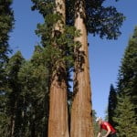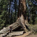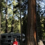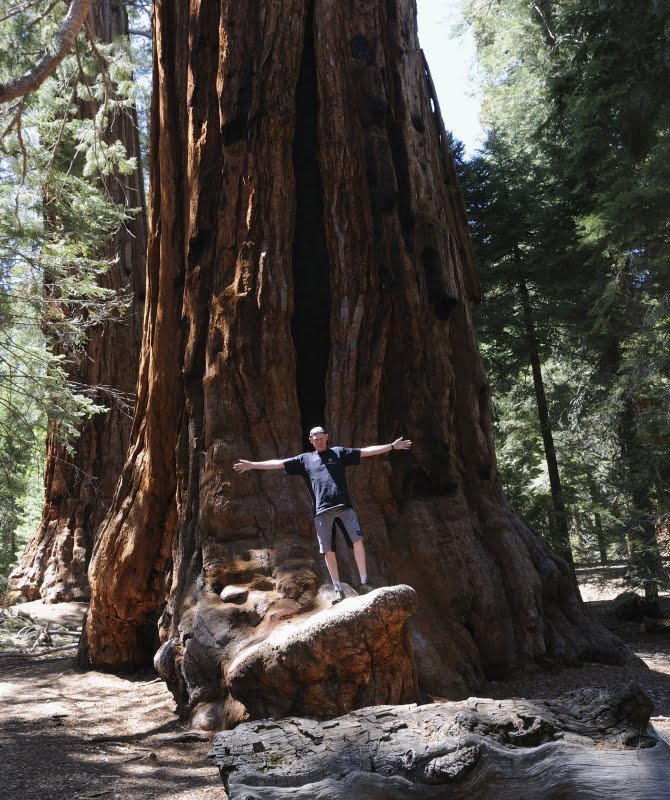 Na het verplaatsen van onze hele voedselvoorraad en toiletartikelen, wandelen we naar de plek waar een aantal reuze Sequoia’s staan, waaronder de 81 meter hoge generaal. Er zijn veel andere toeristen. Er staan hekken om de bomen. Dat zijn we niet gewend. Een omgevallen boom op de route vormt een tunnel. Dat is niet zo gemaakt, maar is zo aangetroffen. In het verleden gebruikten Indianen en later beren het als onderkomen.