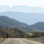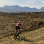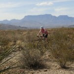 Met wat pijn in het hart laat ik Ingrid onder ‘haar’ boom bij de camper achter. De trail roept als een sirene naar Odysseus. Het is het warmste moment van de dag en de thermometer wijst in Fahrenheit het equivalent van 34 graden aan. Maar met ‘slechts’ ongeveer 65 km voor de boeg kan dat het probleem niet zijn. Twee volle bidons meenemen dan maar. En natuurlijk de fotorugzak. Die heb ik nog nooit gewogen, maar dik tien kilo is het zeker. Na een kilometer of 6 over de verharde weg gaat het linksaf de dirt road op. Die heet River Road East. Het is om te beginnen één lang wasbord. Niet echt prettig voor de billen, maar hij rolt niet slecht. Tenminste de eerste kilometers niet. Dan verandert de trail geleidelijk. Steeds meer grind waar de wielen zo lekker in wegzakken. Steeds is er een beetje meer energie nodig om vooruit te komen. Ook begint de weg langzaam te klimmen. Toch voel ik mij ontzettend happy. Een volwassen man die op zijn mountainbike door een woestijnlandschap mag raggen dat een landschapsarchitect niet mooier aan had kunnen leggen. Gelukkig heb ik een computer op mijn fiets, anders had ik gedacht dat ik al veel eerder bij de afslag naar de Glenn Spring Road had moeten zijn. De 15,5 km had ik volgens mijn benen al 10 km geleden afgelegd. Glenn Spring moet een sadist zijn geweest. Anders was deze road vast niet naar hem genoemd. Venijnige klimmetjes en kilometerslang diepe gravel. Recht vooruit ligt de 2301 m hoge Casa Grande met daarnaast Pummel Peak (2018 meter). Hoe ik ook mijn best doe, Pummel komt maar niet dichterbij. Wat wel dichter bij komt is het einde van mijn watervoorraad. Met nog een halve bidon te gaan, is het tijd om te rantsoeneren. Dat is schrikken, want nog meer dan de helft van de tocht ligt nog voor de wielen. Op de volgende bult komen de zorgen opzetten. De weg slingert oneindig in de verte en in de hoogte. De zon brandt onbarmhartig en het woord schaduw is hier onbekend. Ik ploeter verder. Af en toe schiet er een koude rilling door mijn lijf en komt er een licht zweverig gevoel opzetten. Dat is niet goed. Helemaal niet goed. Toch maar gaan drinken dus? Wat is wijsheid? Iedere mijl een klein slokje is het besluit. Maar één mijl duurt lang als de computer snelheden onder de 10 km per uur aangeeft. Niet opgeven, niet opgeven, trappen, trappen, trappen motiveer ik mijzelf. Bij de weg naar Juniper Canyon een kleine pauze. Nog 10 km naar de hoofdweg. Als je hier neervalt hoef je voorlopig niet op hulp te rekenen. Deze dirtroads worden door geen toerist gebruikt. Het is wachten op een ranger. Aan het einde van mijn latijn kom ik bij de hoofdweg aan. Nog 34 km terug. Gelukkig weet ik dat de weg op het laatste stukje na alleen vals plat naar beneden loopt. Maar dan helpt de wind weer niet mee. Die staat vol in het gezicht. Rustig trappend en enigszins gekoeld door de wind bereik ik Rio Grande Village.