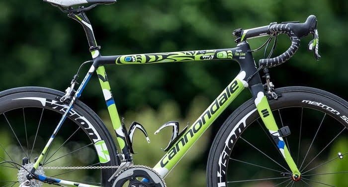 Cannondale rijdt op de SuperSix EVO. Alleen in de kasseienrit van etappe 5 rijdt de ploeg op de Synapse. De SuperSix EVO is een super licht frame van ongeveer 700 gram.