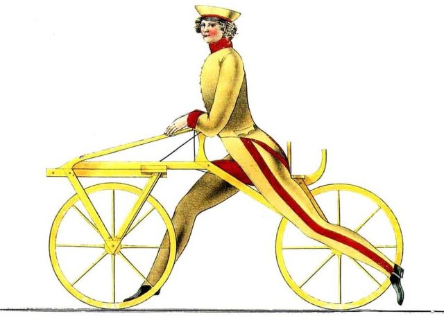 Eerste fiets met trappers en ijzeren wielen