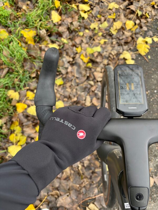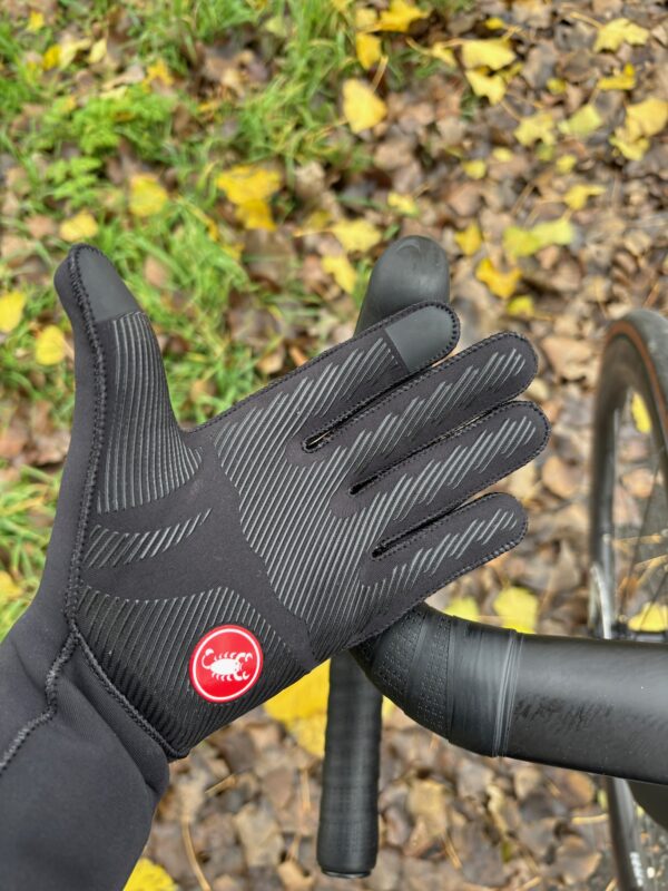 Ik had ze aan bij temperaturen tussen de 3 en 10 graden, daarbij waren ze warm genoeg. Boven de 10 graden moet je ze echt uitdoen, tenzij je een enorme koukleum bent. (Volgens Castelli zijn ze geschikt tussen de 8 en maar liefst 16 graden.) Aan de binnenkant heb je extra grip dankzij de siliconen grippers en de vingertoppen zijn touchscreen-compatibel. Soms moet je wat harder drukken op je telefoon-scherm, maar het werkt en je handen blijven warm. Al met al een fijn setje lichte en soepele handschoenen, waarmee je het fietsen tijdens de koudere dagen een stuk aangenamer maakt.