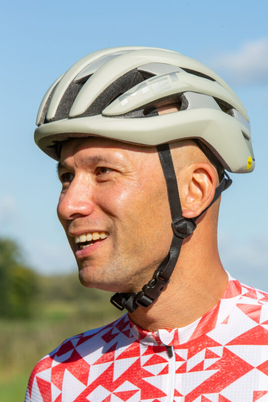 Als de camera op Tadej Pogačar inzoomt, valt steevast één detail op: het eigenwijze plukje haar dat uit een van de ventilatiegaten van zijn MET Trenta wappert. Mooi of niet, het levert het Italiaanse helmenmerk wel elke keer gratis publiciteit op. Pogačar zelf rijdt trouwens met de MET Trenta 3K Carbon, een uitvoering die 350 euro kost en ongeveer 25 gram lichter is dan mijn testhelm, de ‘gewone’ Trenta MIPS.