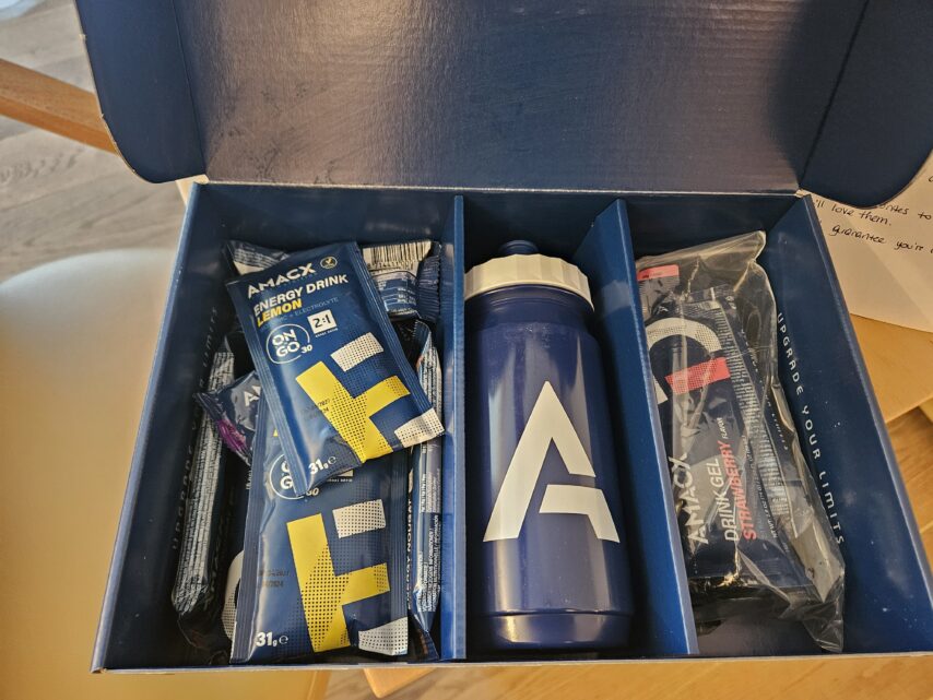 Als ik vroeger sportvoeding nodig had, kwam ik steevast uit op duursport.nl. Op die site kon je niet alleen kiezen voor grote fabrikanten, maar ook voor het huismerk Amacx. Kleine jongens worden groot: inmiddels gebruiken de beste wielrenners op deze aardbol, denk aan Jonas Vingegaard en zijn ploegmaten, Amacx producten. Ik probeerde een pakket die 29,95 euro kost van dit Nederlandse merk.