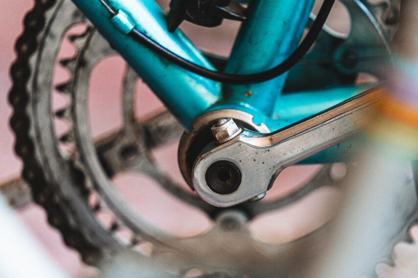 Rob heeft een steeds wisselende verzameling in de showroom staan. Van een Chesini Arena met Campagnolo uit de jaren tachtig, een Gazelle Champion Mondiale tot een RIH Mixte. En een behoorlijk aantal Franse tweewielers. “Kloeke sportfietsen en heel charmante dames-sportfietsen. Een vriend van mij woont in MiddenFrankrijk en doet daar huisontruimingen. Vaak staat er dan achter de Renault 4 en de grasmaaier nog een oud damesfietsje. Soms nog met de decal van de plaatselijke fietsenmaker op de staande buis. Eens in de zoveel tijd komt hij met een busje vol fietsen vanuit Frankrijk naar Eindhoven.”