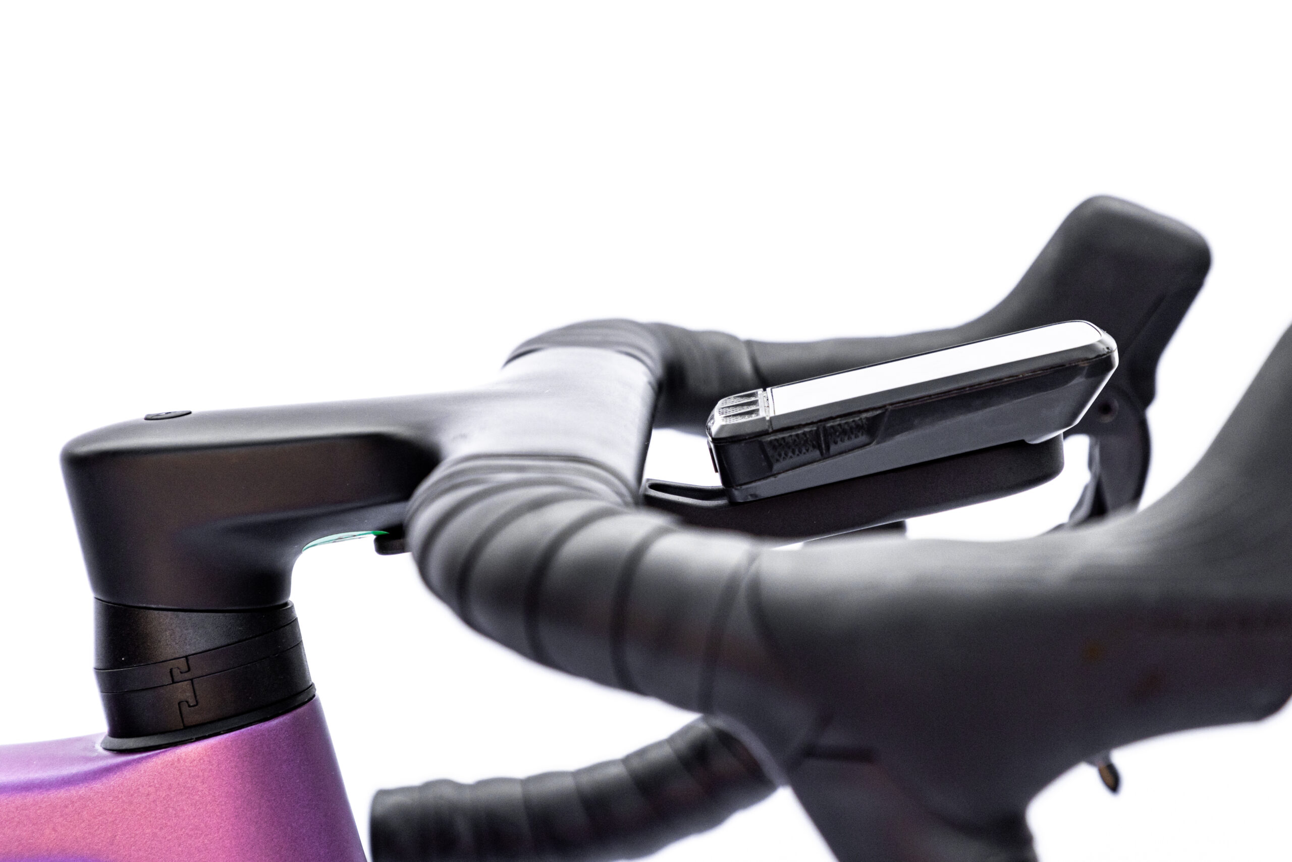 Mijn paarse testfiets staat op me te wachten bij het Canyon Servicecentrum in Eindhoven. Het eerste dat me opvalt, zijn de geïntegreerde cockpit en weggewerkte kabels – dat laatste mocht ook wel een keer. De fiets ziet er prachtig uit. Deze iced berry-lak is prachtig: half mat, half glanzend, opvallend, maar niet schreeuwend. De lijnen kloppen en esthetisch gezien oogt de fiets mooi in balans. De fiets heeft een aantal aanpassingen ten opzichte van het vorige model. Zoals ik al aangaf, lopen de kabels nu ook door het balhoofd. Verder is er extra aandacht geschonken aan de aerodynamica.