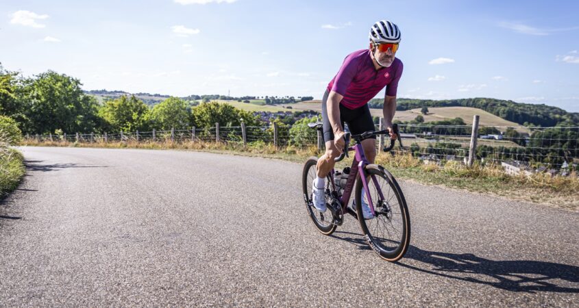 Ik kan op dit moment eigenlijk maar één punt van kritiek bedenken en dat betreft de stuurhouder. Mooi dat er naast mijn Wahoo ook een Garmin op past, maar ik wil hem graag mooi vlak uiteglijnd hebben met de stuurpen, dat is in mijn gedachte nu eenmaal meer aero. Nu torent een Wahoo-fietscomputer er best wat bovenuit. Niet echt een ramp – en voor het lezen van het scherm misschien wel beter – maar kan Canyon wellicht ook een houder speciaal voor Wahoo-bezitters maken? Ik rijd de Gulperberg op via de niet lastige kant, die onderaan stiekem toch nog verdomde lastig is. Eenmaal boven duik ik links weer naar beneden. Ik zet aan en ga plat op mijn fiets liggen. Hij voelt stabiel, precies wat je op dit soort momenten hoopt. Onderaan doen de schrijfremmen wat ze moeten doen. Ik houd de boel prima onder controle. Dit is genieten, hoor. Toch fijn om mijn wat mindere conditie te kunnen verbloemen met een topfiets. Kijk nou, aan het eind van de rit haal ik zelf nog bijna een kommetje.