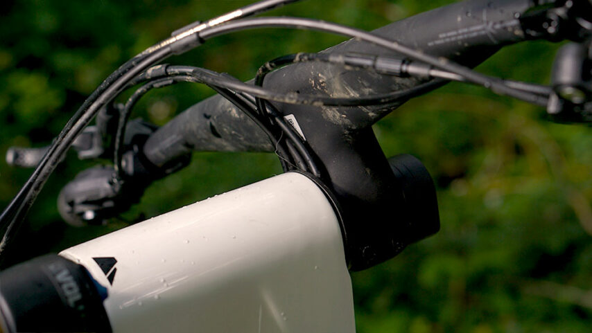 De kabels en remleidingen lopen dan wel mooi binnendoor. Ze lopen ook door het bovenste balhoofdlager en door een speciale spacer/ring die bij het balhoofdstel hoort. Dit lijdt ertoe dat wanneer je een balhoofdlager moet vervangen je ook je achterrem moet ontluchten en de schakelkabel moet vervangen. Een tijdrovend klusje voor een puur cosmetische feature. Mooi is het in ieder geval wel. Canyon is niet de enige die met deze feature komt. haast alle merken lijken bezweken onder de intergratie druk.