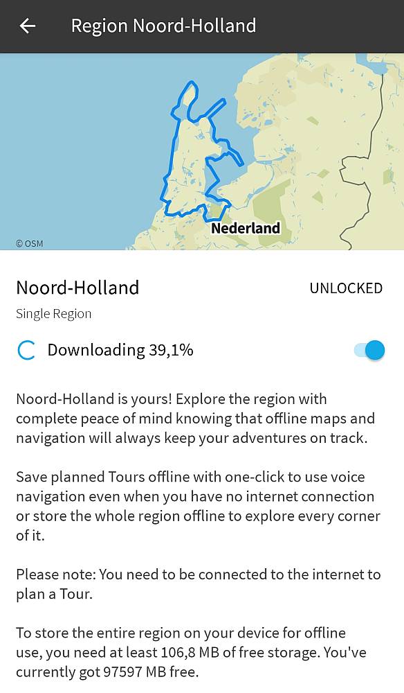 De app is er alleen in het Duits en Engels, zal dat er mee te maken hebben? Of ligt het er aan dat de kaarten niet gratis zijn? Die zijn echt van een zodanige kwaliteit dat ze het geld meer dan waard zijn. Na het aanmelden in installeren, krijg je de eerste regio gratis. Daarna kun je kiezen of je er een losse regio bij wilt kopen (€3,99), of een groter regio-pakket (€8,99) of in 1 klap alle kaarten van de hele wereld(€29,99). Levenslange gratis updates zitten bij de prijs inbegrepen.