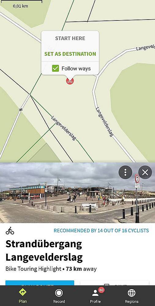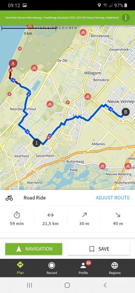 Vreemd eigenlijk dat Komoot nog steeds niet heel populair is in Nederland, terwijl ook de oude versie al een heel fijn werkte. Het is echt een prima navigatie-app. Bij onze oosterburen is de app een stuk bekender. Dat zie je ook duidelijk als je de openbare fietsroutes bij onze Noordzee-kust bekijkt, meer dan de helft daarvan heeft een Duitstalige titel.