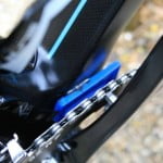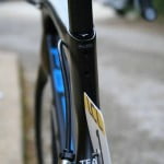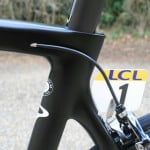 De nieuwe Dogma is een aero frame dat gemaakt is van zogeheten Torayca T1100 1k carbon. De vork lijkt te zijn overgenomen van de Pinarello Bolide, de tijdritfiets van de Italiaanse fietsenfabrikant. De kabels lopen binnendoor en uit aerodynamische overwegingen zijn er drie montagemogelijkheden voor de bidonhouder. Hoe lager de bidonhouder, hoe aerodynamischer de fiets. De geometrie van Froome’s fiets is gelijk aan die van zijn Pinarello Dogma 65.1. Froome blijft ook vasthouden aan zijn Osymetric ovale bladen. Wat verder opvalt is dat het beschermkapje van de extra schakelknopjes van de elektronische Shimano Di2 groep, is weggelaten. Ook is er een door de mecaniciëns bewerkte kettingvanger. De bestaande K-Edge kettingvanger die het team gebruikt, is niet geschikt voor ovale bladen. In FIETS nummer 6 staat een test van de Dogma F8.