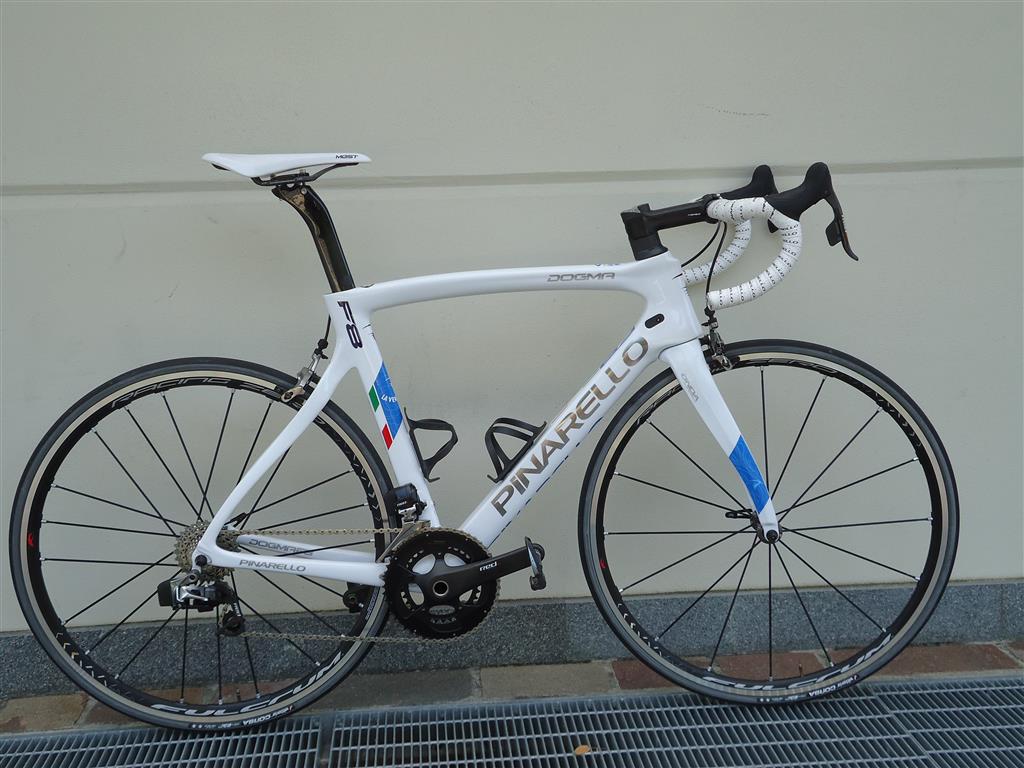DSC03889 (Medium)Pinarello is een 100 % Italiaans merk. Een met een lange, lange historie. In 1952 kwam de Italiaan Giovanni Pinarello (1922-2014) voor een groot dilemma te staan. Nadat de Italiaan zijn plek voor de Giro d’Italia moest af geven aan een andere coureur, werd hem 100.000 Italiaanse lire aangeboden door zijn sponsor Bottecchia om een eigen fietsen fabriek op te starten. Hiervoor moest hij echter wel het wielrennen, opgeven. Tussen 1952 en 1960 begon Pinarello met het maken van zijn eigen fietsen, deze werden door hem gepromoot bij kleine lokale teams. Met het hoogtepunt in 1957 wanneer voor het eerst een lokaal team met een Pinarello fiets mee doet aan de nationale competitie, het team met deze eer was het Italiaanse la Padovani. Na nog vele andere kleine teams gesponsord te hebben, was er in 1960 voor het eerst een professioneel team dat Pinarelo als sponsor hadden. En toen waren ze vertrokken. Mannen als Grewal, van der Velde, Ullrich en natuurlijk Indurain reden met Pinarello. En ook nu nog: Sky koerst met Pinarello.