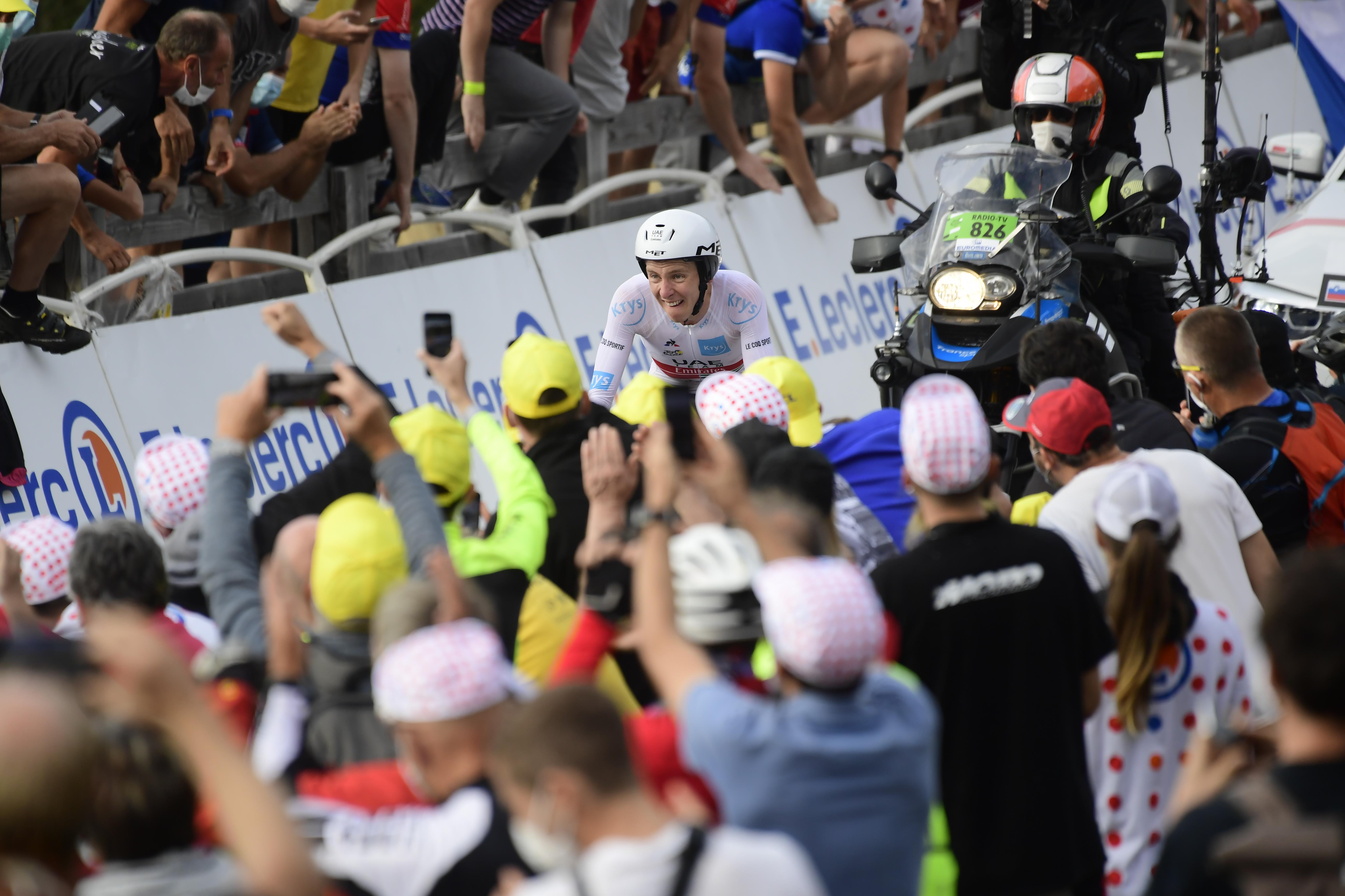 Pogacar moest 57 seconden goed maken op zijn landgenoot en begon voortvarend aan de 36,2 kilometer lange race tegen de klok. Bij het eerste tussenpunt na iets meer dan een kwartier had hij al 17 seconden gepakt op Roglic en leek hij te hard van start zijn gegaan, maar in het vervolg bouwde hij zijn voorsprong alleen maar verder uit. Op La Planche des Belles Filles had hij binnen een mum van de tijd de toptijd van Tom Dumoulin al vermorzeld en maakte hij ook gehakt van de geknakte Roglic, die de neerwaartse spiraal niet meer kon keren.