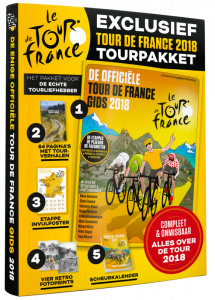 Het Officiële Tour de France Pakket 2018 bevat:• De 196 pagina’s dikke Officiële Tour de France Gids 2018 met hierin alle etappes, ploegen en kanshebbers