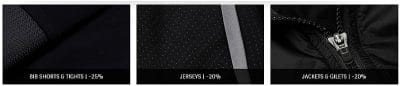 Ook in Nice doen ze aan ‘Le Vendredi Noir’. Op alle shirts en jacks van Cafe du Cycliste zit 20% korting, broeken krijgen 25% korting en base layers zelfs 30%. Daarnaast zijn er ‘bundels’ met 40% korting. Bijvoorbeeld de combi Daphné + Adèle: Was 350€ | Is nu 210€.