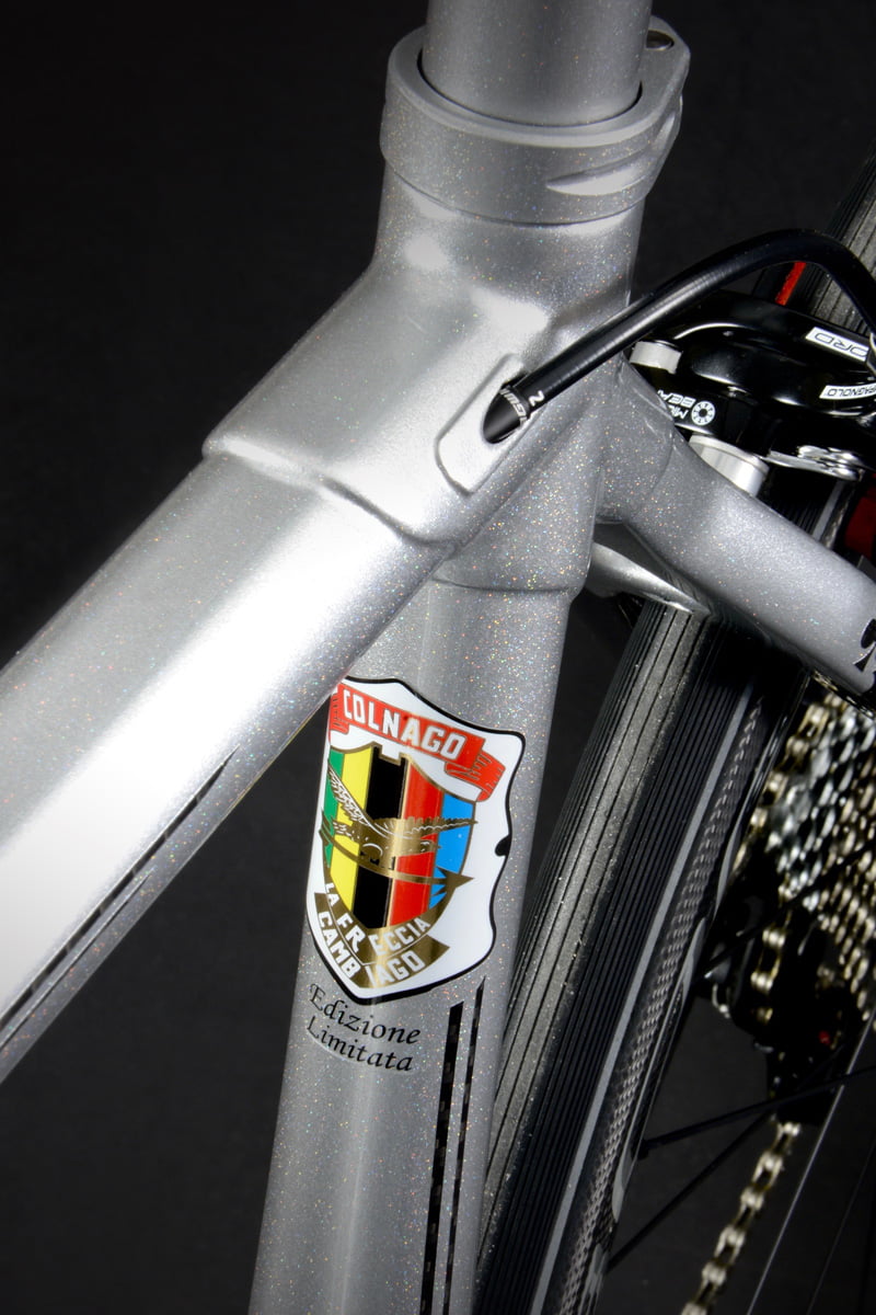 Distributeur Codagex was aanwezig op het feestje en nam een exemplaar mee voor in de showroom. Mocht je interesse hebben in dit feestnummer, dan kun je hem bekijken in het Codagex Xperience Center in Dessel. Vijf jaar geleden deed Colnago trouwens hetzelfde voor de 80e verjaardag van Mr.Colnago. Toen met de C59, die de naam Ottanta meekreeg, en een gouden laklaag. Je snapt ondertussen dat Ottanta staat voor 80 in het Italiaans. Ik ben benieuwd of we in 2022 een bronzen C61 te zien krijgen.