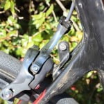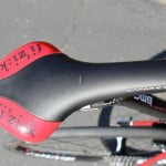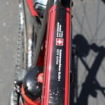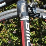 De fiets van Van Garderen valt op als je er naar kijkt. Hij heeft duidelijk geen standaard voorkeur, als het gaat om fietsmaat en onderdelen. De Amerikaan is 1 meter 85 lang, maar rijdt op een fiets met framemaat 55. Hij compenseert dat weer met een hele lange stuurpen: een 140 mm, die hem nog dieper laat zitten.