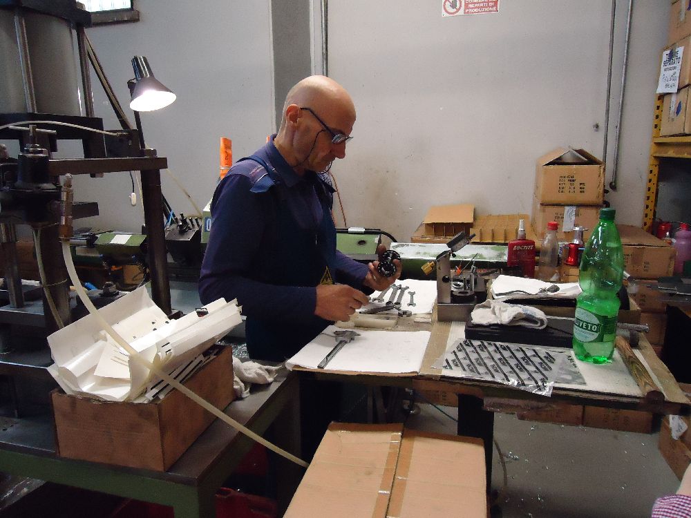 Is Miche dan alleen firma die inkoopt? Nee. Dat maakte een bezoek eind november wel duidelijk. Miche is een echte machinefabriek. 40 man werken er waarvan 30 in de productie. Allemaal mannen overigens. In totaal 1.2 miljoen producten per jaar worden er vervaardigd. Waaronder 28.000 wielen per jaar en zoiets simpels als 5000 kransjes per dag. Het zijn die kransjes die Miche vooral faam geven bij de liefhebber. Het al genoemde Campagnolo maar ook Shimano bieden vooral cassettes in vaste volgorde aan en waarvan ook nog eens kransjes vast aan elkaar zitten. Miche levert alle kransjes en middels een hele reeks aan tussenringen zijn de kransjes ook nog eens compatible met heel wat aandrijvingen en naven. De kransjes worden echt nog gestanst uit staal en daarna via een CNC robot precies van de juiste inkepingen voorzien.