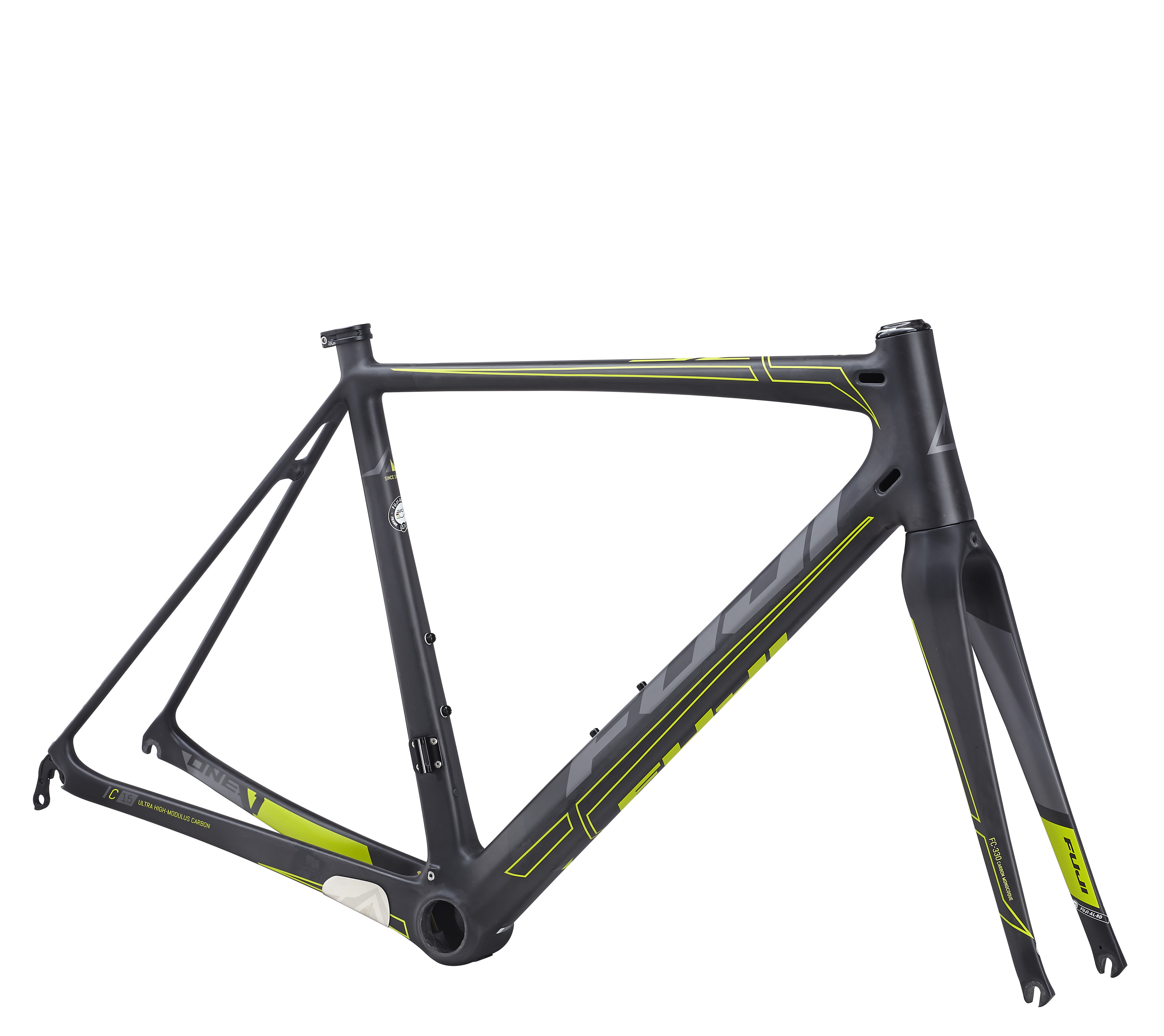 In de voorvork is een extra rib geplaatst voor de stijfheid. Dit is een gepatenteerde techniek van Fuji’s carbon leverancier, Reinforced I-Beam of RIB is de naam van de techniek. Een rib die in de lengte door de hele vork loopt, zie de foto.