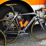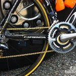 Hij mag zich in ieder geval nog een paar weken Olympisch kampioen noemen. Samuel Sanchez heeft een fiets waarop dat duidelijk te zien is. Het is goud dat blinkt op zijn Orbea Orca.