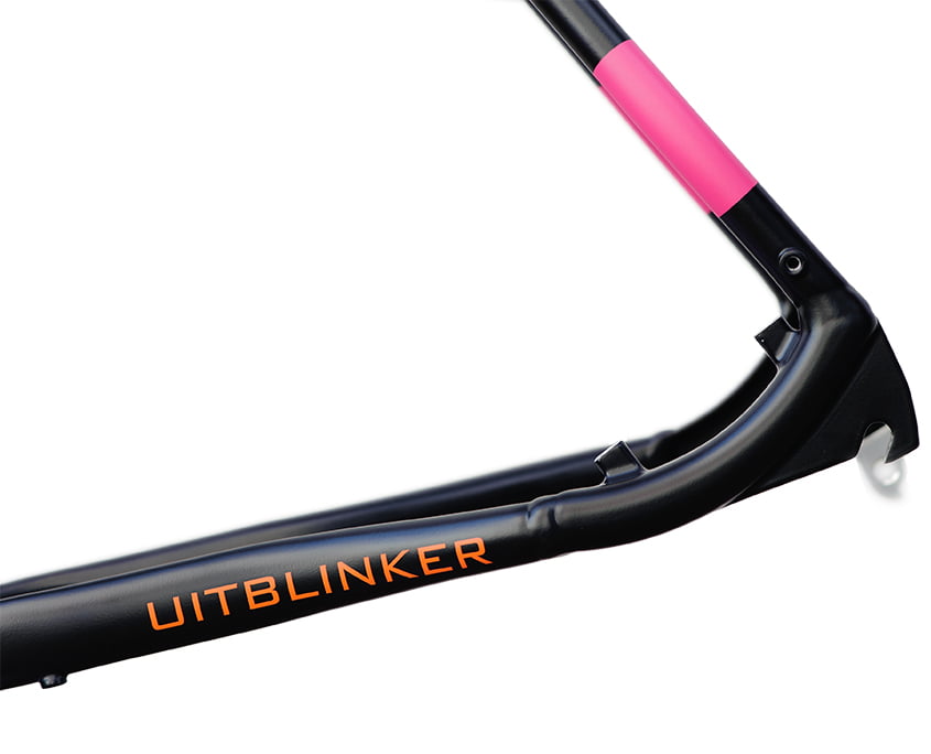 Volgens Licello is alu helemaal terug, ze hebben er zelfs een naam voor bedacht: Aluminatie. De Uitblinker is dus gemaakt van aluminium, de vrolijke frameset kost je € 999,- , een frameset plus komt op € 1099,- (Licello stuur/pen/zadelpen, geanodiseerd).