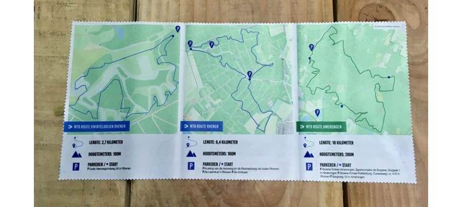 Leuk bedacht en (hoewel de routes ook prima staan aangegeven) geinig om een overzicht te hebben en tegelijk je fietsbril te kunnen ontdoen van smurrie. De doekjes zijn in samenwerking met de Stichting MTB Utrechtse Heuvelrug tot stand gekomen.