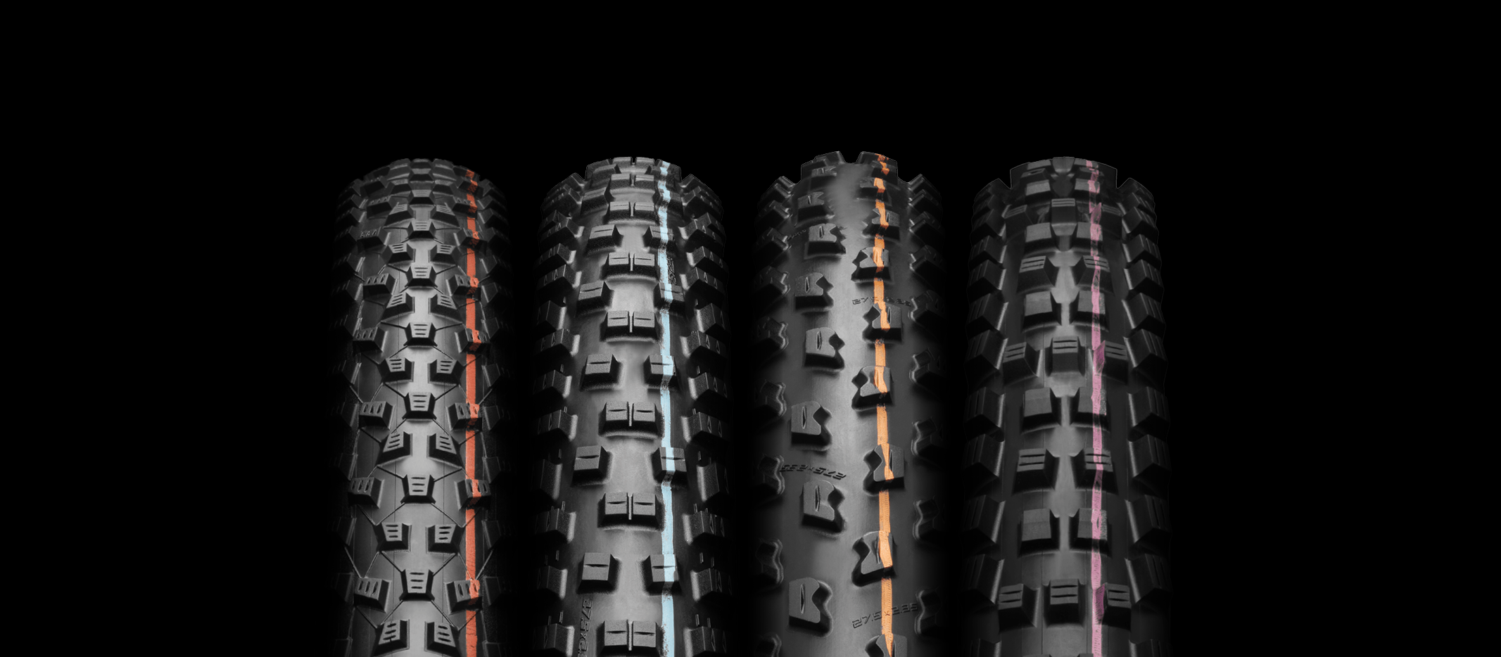 3. Addix Soft, met de oranje kleur: Dit compound hoort thuis in de enduro- en downhillwereld, maar past ook bij het veeleisende allmountain of trailriding. Hij blinkt uit met goede roleigenschappen in combinatie met uitstekende demping – ook bij lage temperaturen. Ook goed geschikt voor E-MTB Bikes.