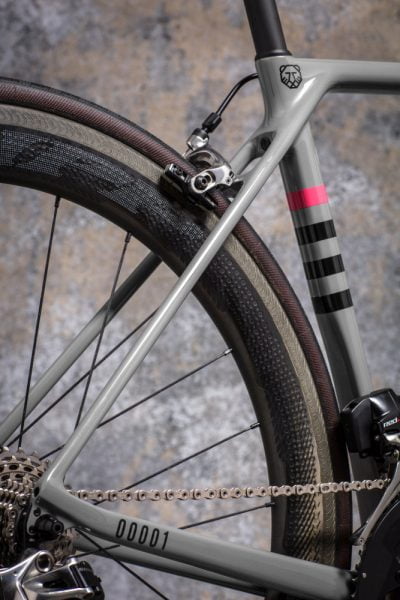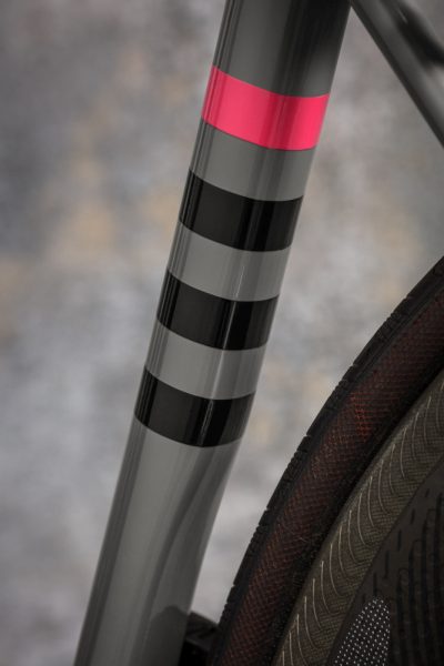 Slechts 50 van deze Canyon Ultimate CF SLX 9.0 Aero gaan er gemaakt worden. Met handgespoten grijs en zwart in het Rapha RCC thema. Dus met roze accenten.