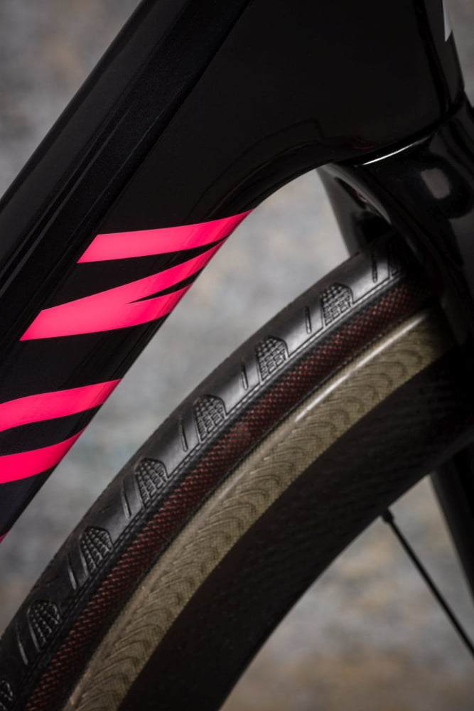 Slechts 50 van deze Canyon Ultimate CF SLX 9.0 Aero gaan er gemaakt worden. Met handgespoten grijs en zwart in het Rapha RCC thema. Dus met roze accenten.