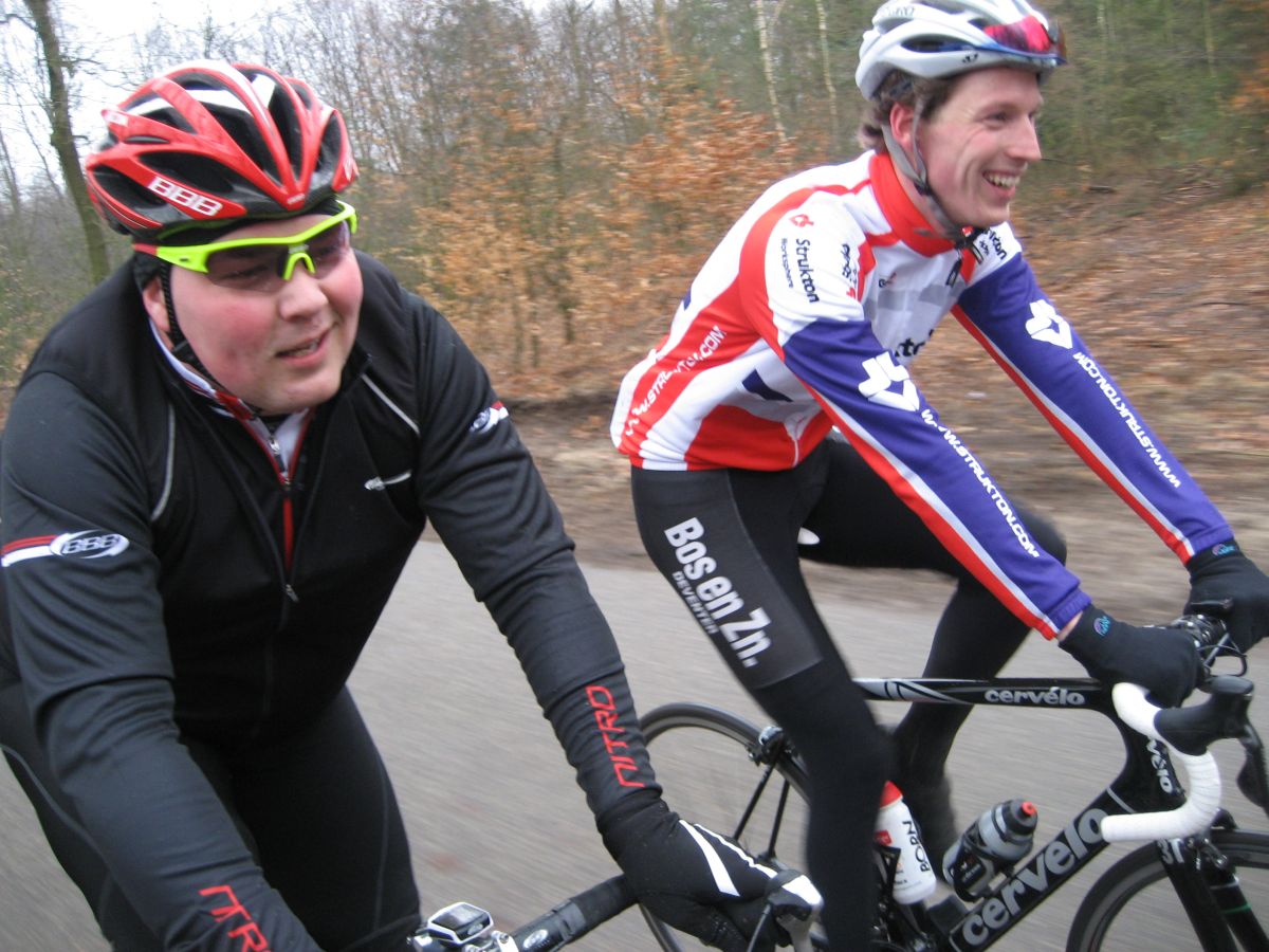 Ondanks dat we drie jaar verder waren, was er overigens weinig verandert. Edwin nog steeds stoepend op een 66 cm dranghek, Bas klagend over een gebrek aan vorm en ik nog steeds heaviest finisher. Of te wel voor mij aanklampen als de weg opliep bij twee kwebbelende fietsers, proberen er naast te blijven op het vlakke en als de weg omlaag liep even laten zien dat ik er nog was. Het viel mij niet eens tegen en ik geloof dat ook Bas en Edwin niet ontevreden waren met mijn huidige vormpeil. Bovendien is er gelukkig nog tijd en ruimte voor verbetering.