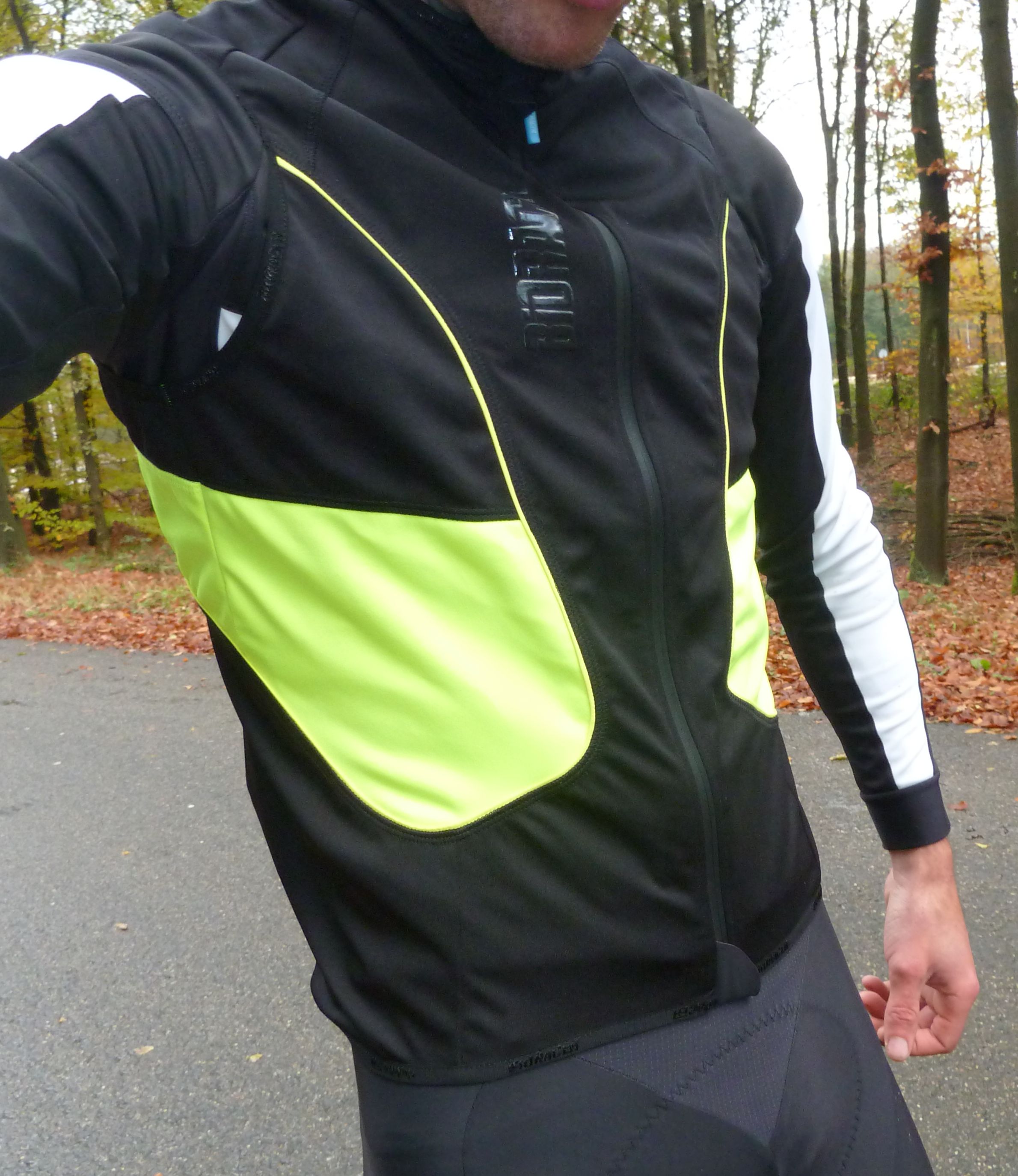 Op de maatvoering is niet veel aan te merken, een M valt ook als een M. De rits dichtdoen is even wennen, je moet de afwerking van de rits aan de onderzijde opzij doen waarna je kunt ritsen. Onderweg even je jack helemaal dicht ritsen is dus lastig. Aan de bovenkant is de rits prettig afgewerkt door een stuk stof. Dit voorkomt irritatie. Wat we ook al zagen bij andere merken: een handige opening aan de achterkant. Zo kun je zonder de body omhoog te hoeven trekken in je achterzakken. Met een stevige wind op kop merk je goed dat de wind niet door de body heen gaat. Ook al fiets je stevig door, je krijgt het niet snel te warm. Dat hangt trouwens ook af voor je keuze van ondershirt en welk jack met lange mouwen je aantrekt! Opties