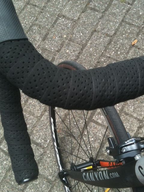 Schokdempend, zweet opnemend en ‘anti slip’. Zo presenteert Silva dit lintje. In een doosje zitten twee linten, beiden 1 meter 80 centimeter, 3 centimeter breed en voorzien van honderden gaatjes. Bij de Forello worden twee ‘carbon’ doppen geleverd. Mooi vormgegeven, voorzien van de merknaam ‘Silva’. Het kunststof materiaal voelt zeer zacht aan en is goed rekbaar. Let wel even op bij de montage van het lintje. Het is goed rekbaar, maar je moet niet gaan ‘trekken’. Door de gaatjes is het lintje gewoon net wat minder sterk. Het gevoel? Een soort ‘kurk’, maar dan iets ruwer. Dat ruwere gaat wel weg na een aantal ritjes; dan voelt het steeds zachter aan. Door het samenknijpen van je handen op het stuur wordt het lint ook wat meer ‘geplet’ en voelt daardoor ook wat dunner aan. De Forello is zo prettig dat je geen handschoenen nodig hebt.