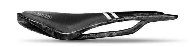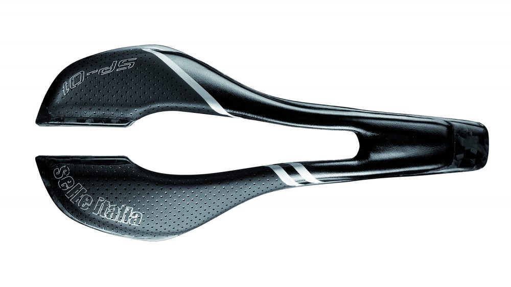Dankzij het gebruik van veel carbon, en natuurlijk een gapend gat tussen de twee zitplekken is de SP-01 een bijzonder licht zadeltje geworden. Slechts 125 gram tikt ie aan op de weegschaal. De carbondelen zijn opgebouwd uit met de hand gelegde matjes, met de vezels in de richting waarop ze de meeste krachten te verduren krijgen. Die zijn gecombineerd met ‘chopped fibres’. Met als resultaat een zadel met een geweldige strengt-to-weight ratio.