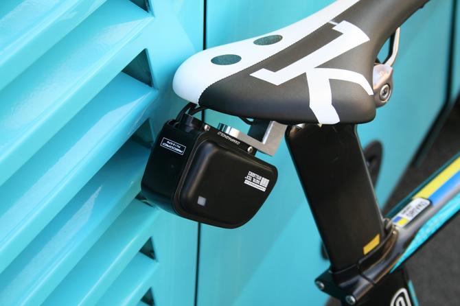 Campagnolo levert dit seizoen onderdelen aan Astana. Het ‘brein’ van de electronische EPS groep is weggewerkt onder het zadel van de fiets van Andriy Grivko’s Specialized.