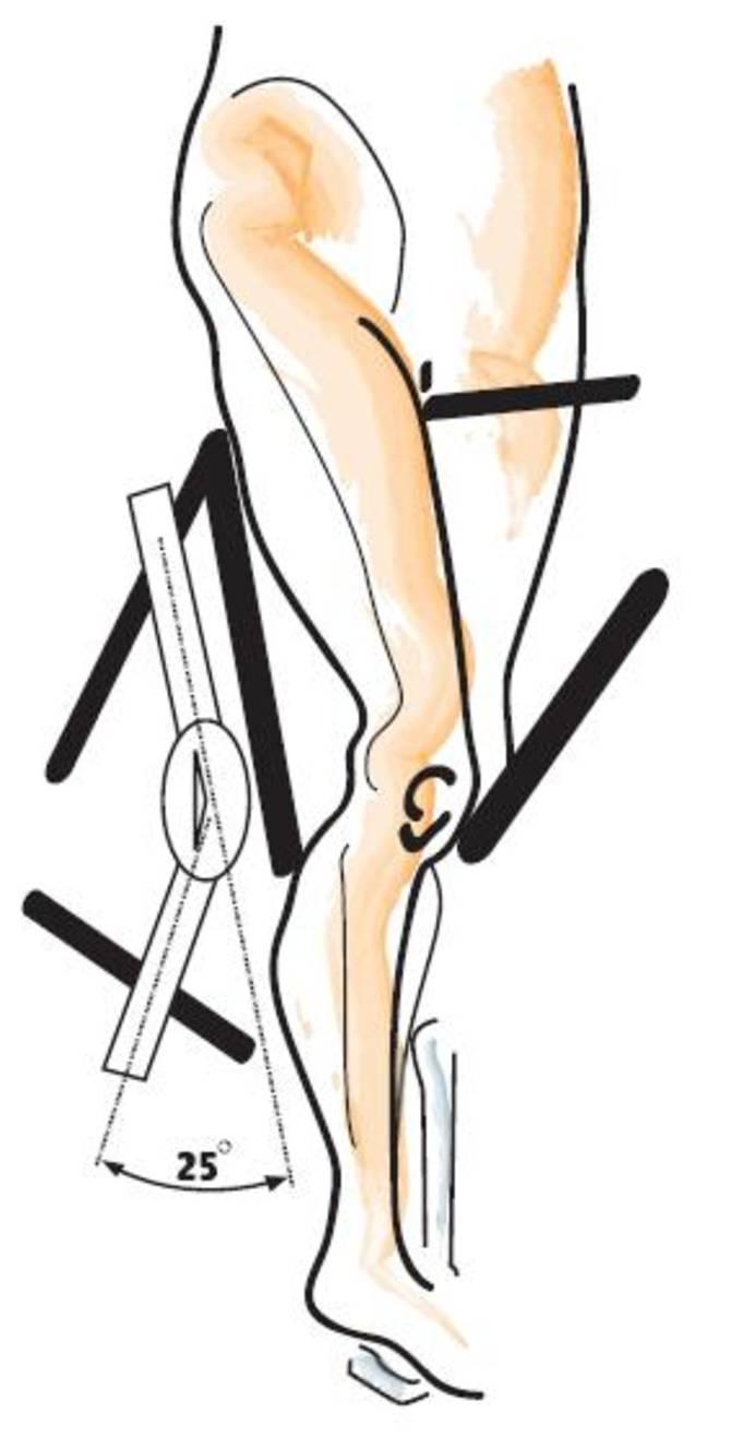 Dit is de lastigste manier om de zadelhoogte te berekenen. De methode is ontwikkeld om blessures bij wielrenners te voorkomen. Bij de meting wordt gebruik gemaakt van een zogeheten goniometer. Dit apparaat meet de hoek van het kniegewricht onderaan de pedaalslag. Holmes adviseert een hoek van tussen de 25 en 35 graden. Fietsers die wel eens last hebben van knieklachten (tendinitis), wordt geadviseerd de hoek zo dicht mogelijk bij de 25 graden te houden. Professor Pelever gaat zelfs iets verder. Hij adviseert alle wielrenners een hoek van 25 graden aan te houden. ‘’Mijn onderzoek heeft aangetoond dat het instellen van een zithoogte gebaseerd op een kniehoek van 25 graden alle andere methoden (met inbegrip van een hoek van 35 graden) overtreft.