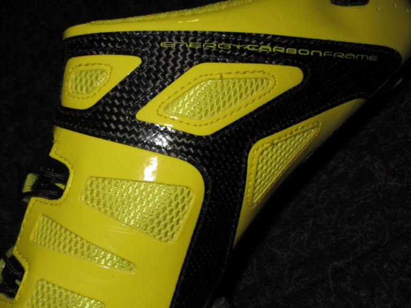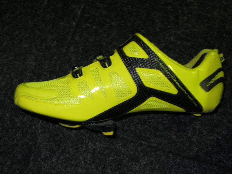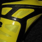 ERG GOEDE WAARDE IN STIJFHEID EN OOK EEN GOEDE DRUKVERDELING.. Terecht, want de Zxelliums combineren een stijve zool met een upper die doet denken aan een comfortabele pantoffel. Uren, dagen fietsplezier zonder voetenpijn. Toch zaten er wat haken en ogen aan de schoen, vertelden we in de feedback. Zo zit het schoenplaatje iets te ver naar voren gemonteerd en hebben we kritiek op de lengte van de klittenbandsluiting, die voor smalle voeten te lang zijn. Vanuit de rangen der profs kwamen ook wat opmerkingen: vooral de upper was te slap. Huiswerk dus voor de designers van Mavic. En ze hebben alle op- en aanmerkingen ter harte genomen en de ultieme fietsschoen gemaakt als opvolger van de Zxellium Ultimate voor 2012. Met een carbon versteviging is de upper stijver geworden. Een stuk stijver: je kunt niet zomaar het materiaal induwen. Het comfort van de schoen is gebleven, zodat een lange dag in het zadel geen pijn aan de voeten hoeft op te leveren. Het plaatje zit niet meer vast aan drie gaten met schroefdraad, maar aan een bewegend plaatje aan de binnenkant van de zool. Dat geeft veel meer mogelijkheden, maar afstellen luistert daardoor ook nauwer. Ook de velcro’s zijn aangepakt, net als de kliksluiting. Wat gebleven is, is het gevoel dat dit de beste schoen op de markt is, als tenminste de pasvorm je bevalt. Al met al de naam Ultimate meer dan waard, want dit is de ultieme fietsschoen. Ook in andere kleuren dan geel!